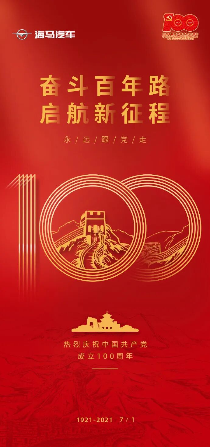 初心不变,永远跟党走,海马汽车热烈庆祝,中国共产党成立100周年
