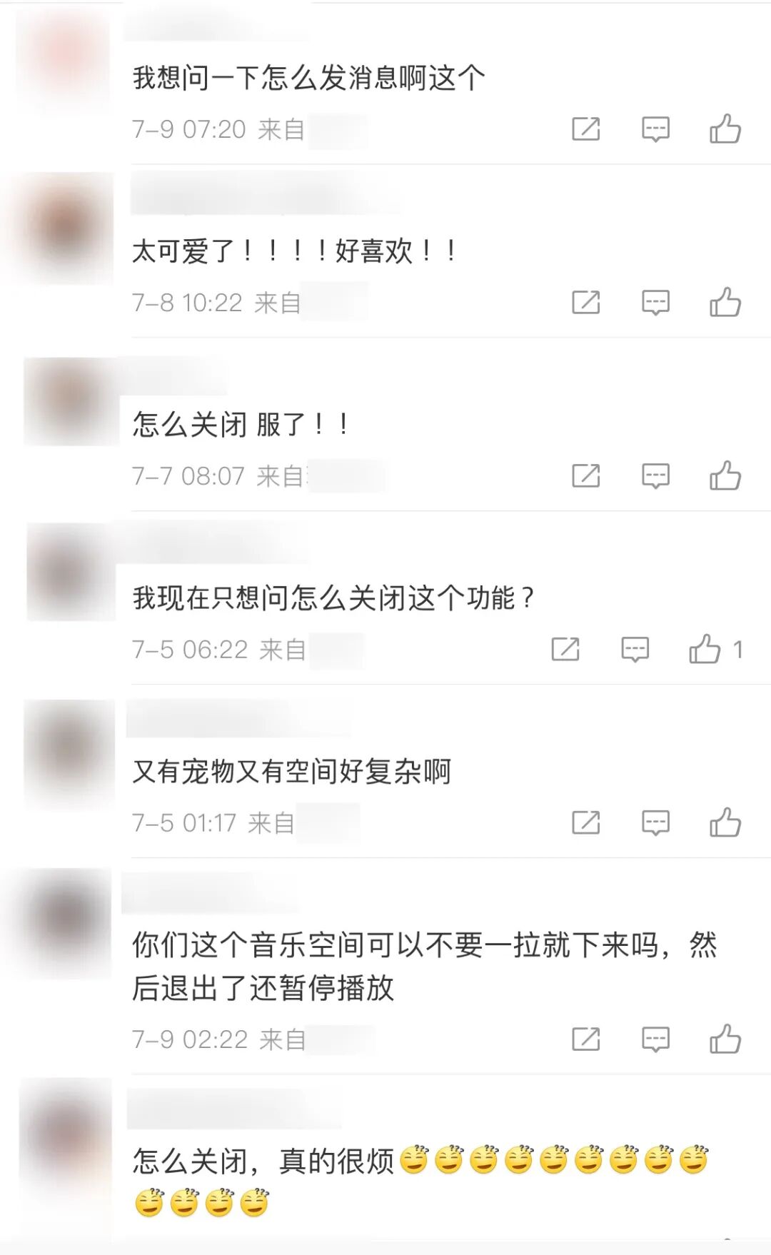 / 部分微博用户对QQ音乐“Music Zone 音乐空间”功能的评论 / 图源:截自QQ音乐微博评论区