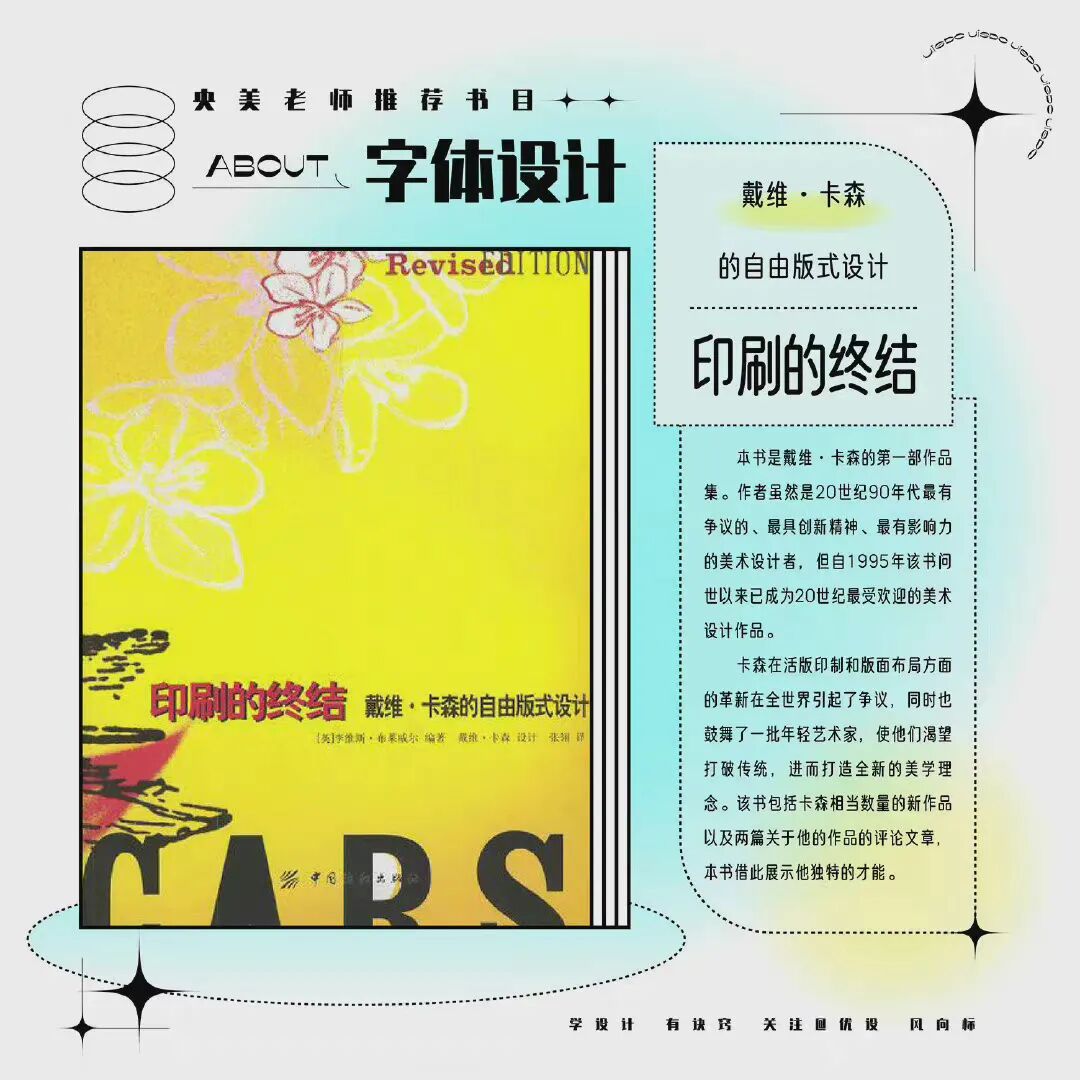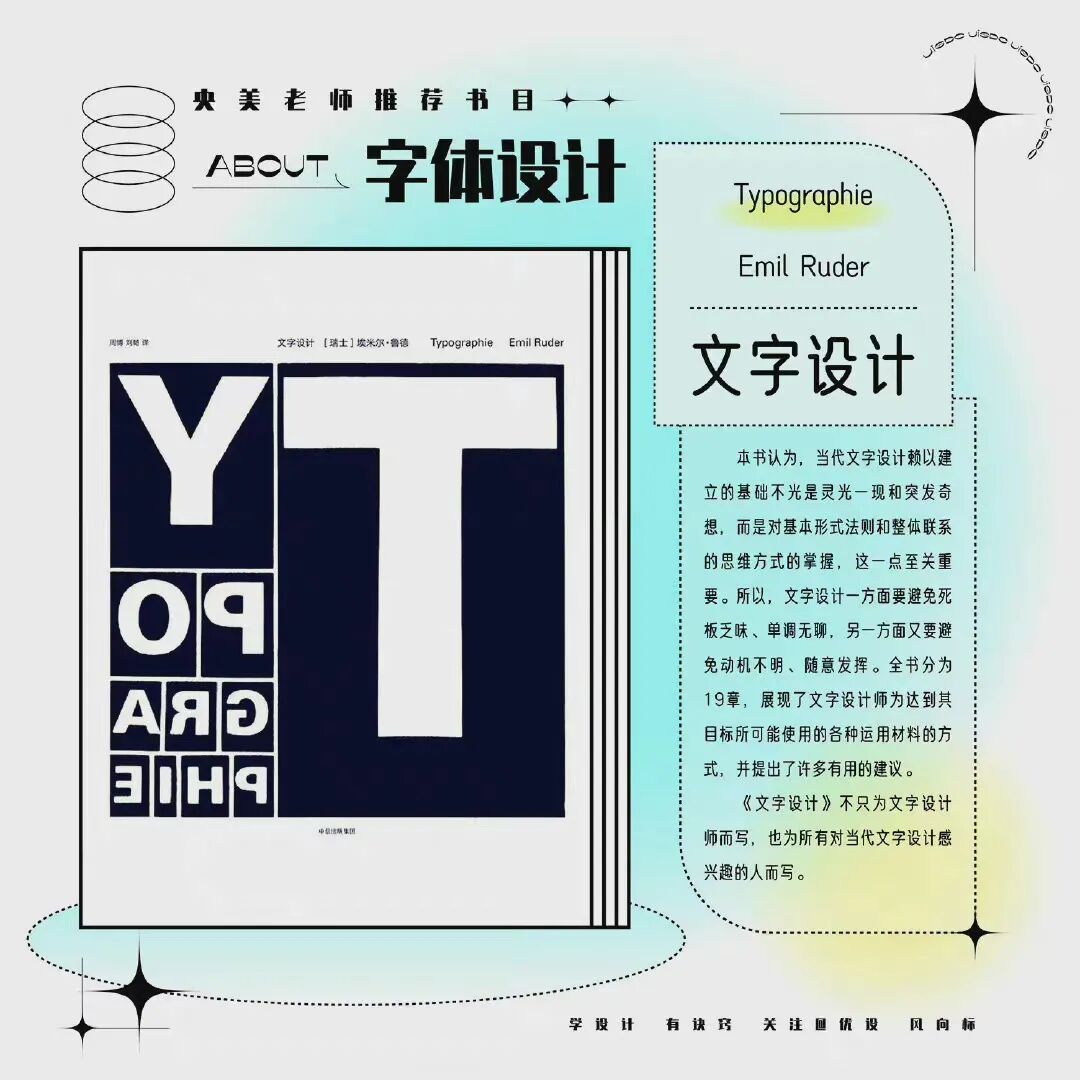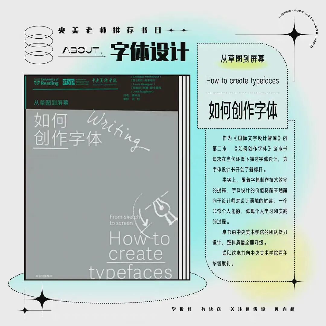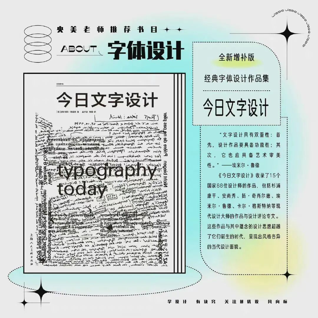 大家周末好,今天给大家分享9本和字体设计相关的设计书籍,中央美院老师强烈推荐书目:《疾风迅雷》《字体摩登》《文字设计》《设计图史》《今日文字设计》《写设计》《印刷的终结》《如何创作字体》《字腔字冲》掌握字体设计的技能和知识可以让设计师在设计中更加自如地运用各种字体,从而提高设计水平。感兴趣的小伙伴可以看看!