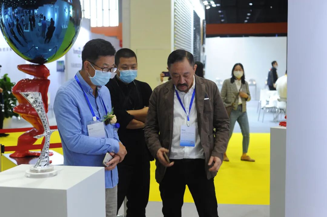 我们在展会现场看到,广州美术学院雕塑与公共艺术学院院长陈克,广州市文化艺术大师曾振伟,广东省陈设艺术协会副会长梁永标,全国城市雕塑建设指导委员会艺术委会委员潘奋,他们以联展的形式呈现“未命名——雕塑主题展”,不同风格的作品引得观众频频拍照。