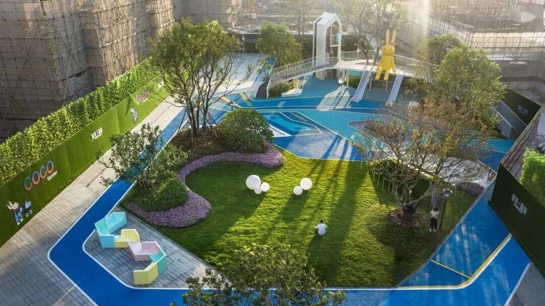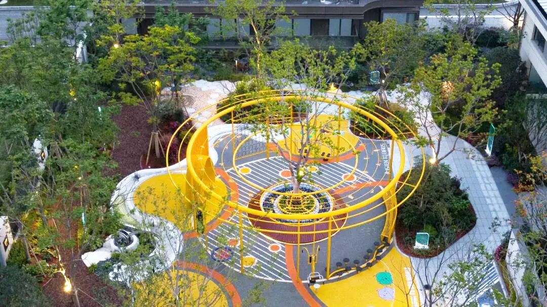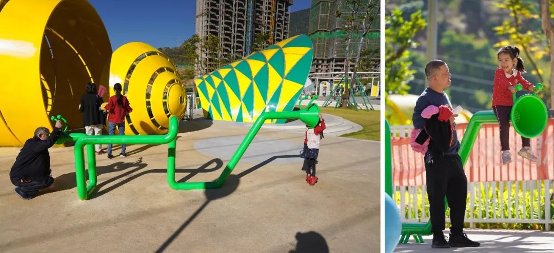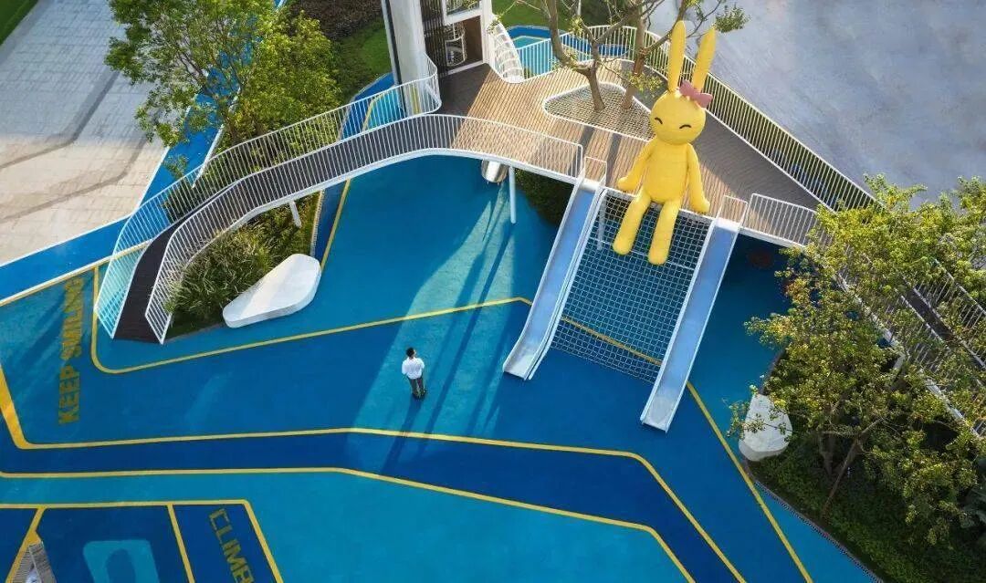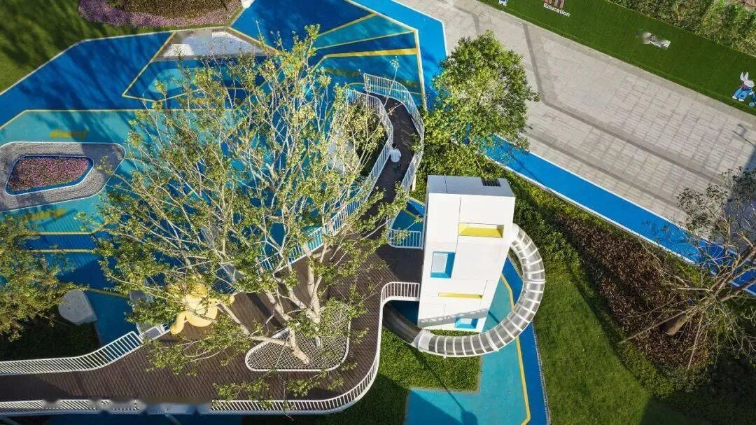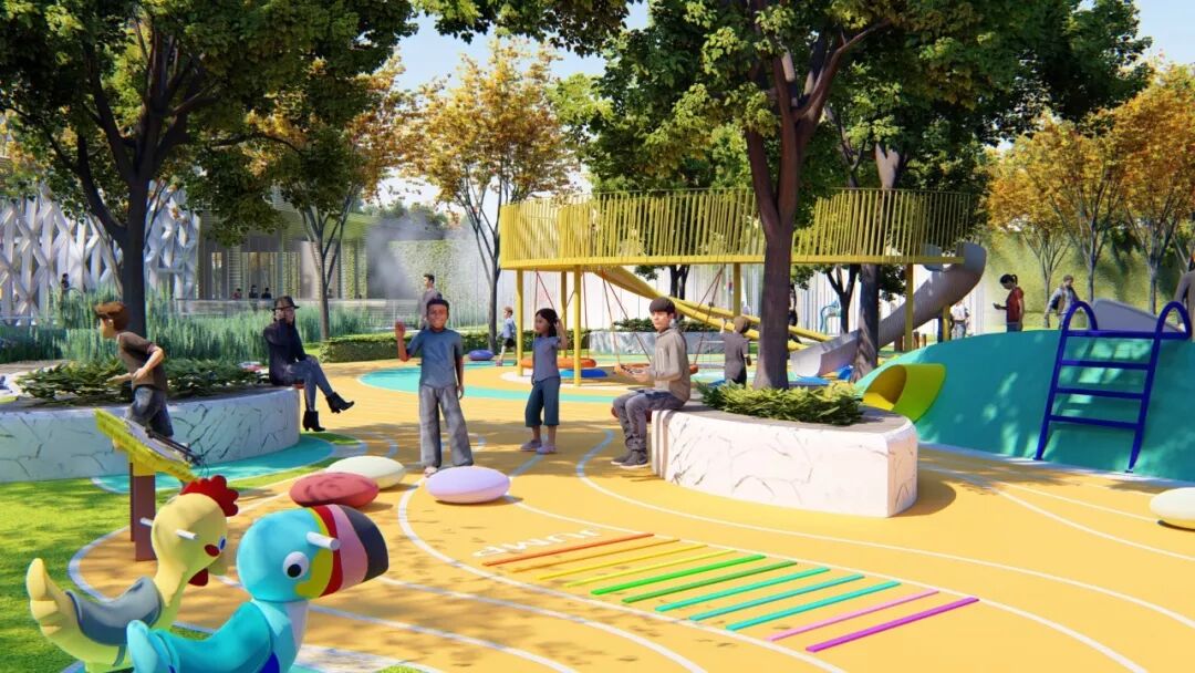 经售楼部向外,是新力打造的首个社区户外乐园式课堂,场地结合不同成长阶段的蝴蝶IP进行适童化场景设计,划分出蝶茧成长区、蝶谷娱教区、蝶宝宝幼儿区,成为满足0-12岁儿童教育、游戏、成长的乐园,并在边界拓展满足成人与老年人陪伴及开展自我锻炼的活力空间。