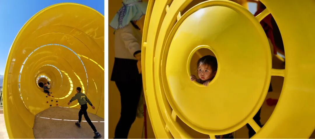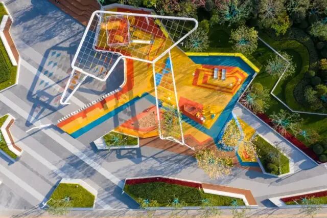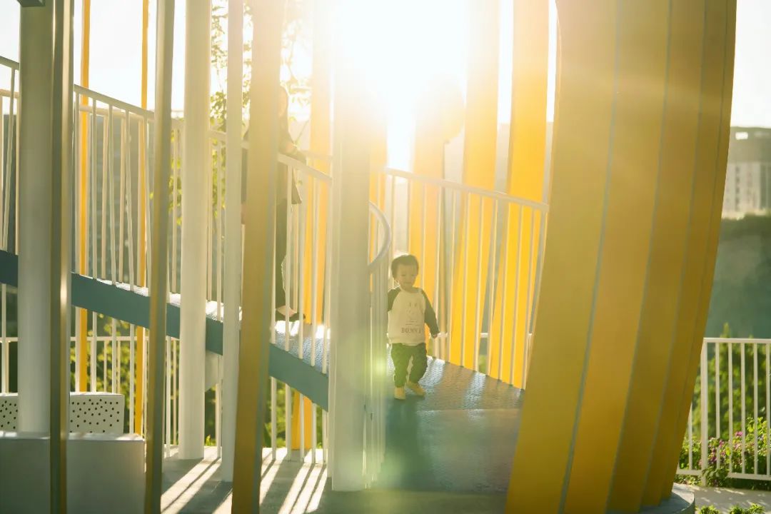 独特的动态风动装置为这一公共空间提供了创意十足的背景。设计师们将人的动态体验感放在第一位,将空间灵活组合,自由拼贴。打造出一处全龄化可参与且兼具互动性、趣味性的儿童活动空间,让人怀揣好奇,在此探索周游。