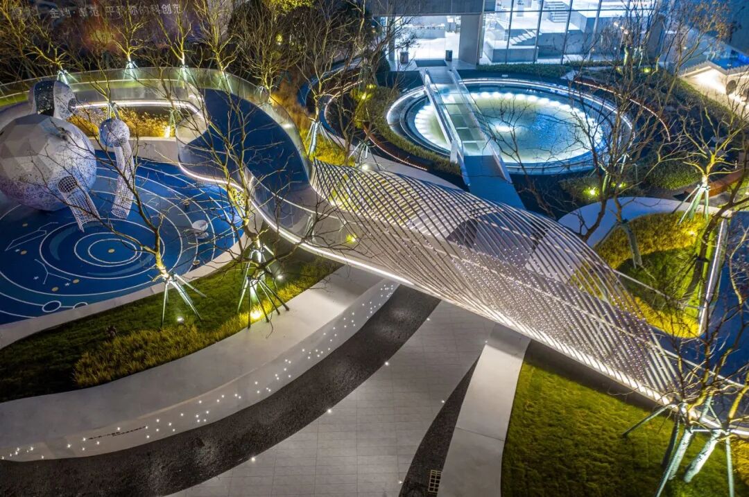 具有时尚范儿的景观,提倡全龄互动、共享设计及人文关怀。整个示范区,我们提取星空与森林的概念元素,让自然之美与城市生活相融,方寸之间尽显「峯范」。