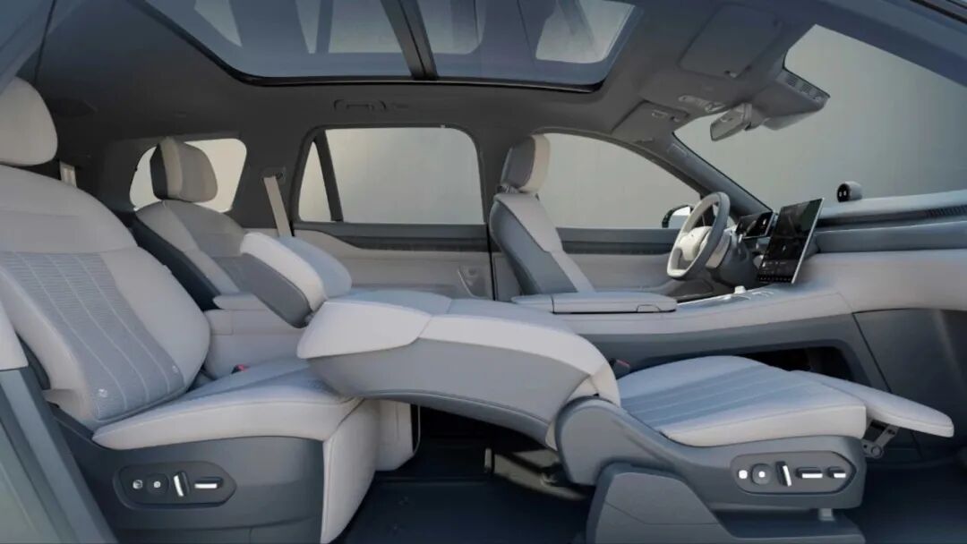 副驾的女王座椅除了可以实现22向电动调节和135度倾角的一键调节,还能让你享受到170度倾角的一键躺倒功能,腿托也可以加热。不仅如此,二排座椅也都配备了电动腿托,标准版能够实现14向调节。