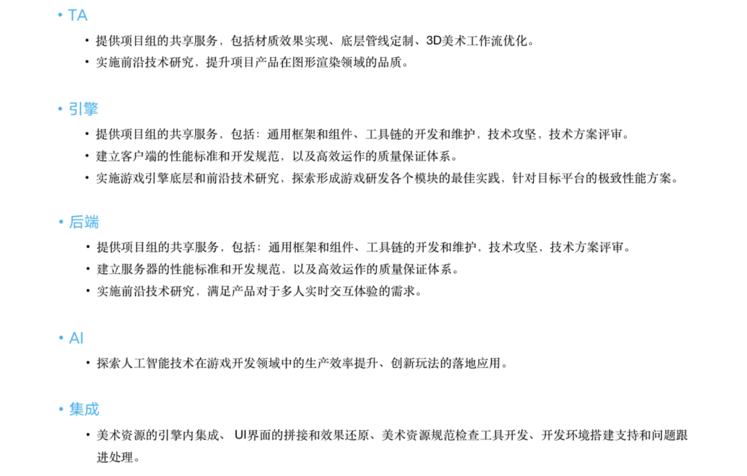 服务器(后端)组和客户端组类似,在不同的条线上承担同样的职能。AI就是在游戏开发的生产环节、创新玩法方面做探索和落地应用的尝试。