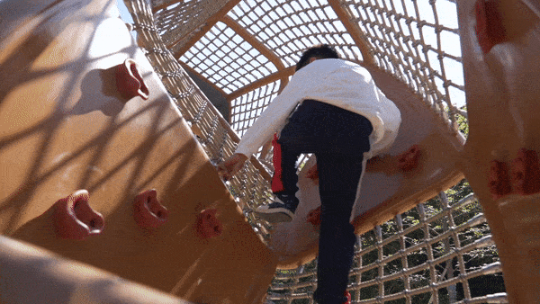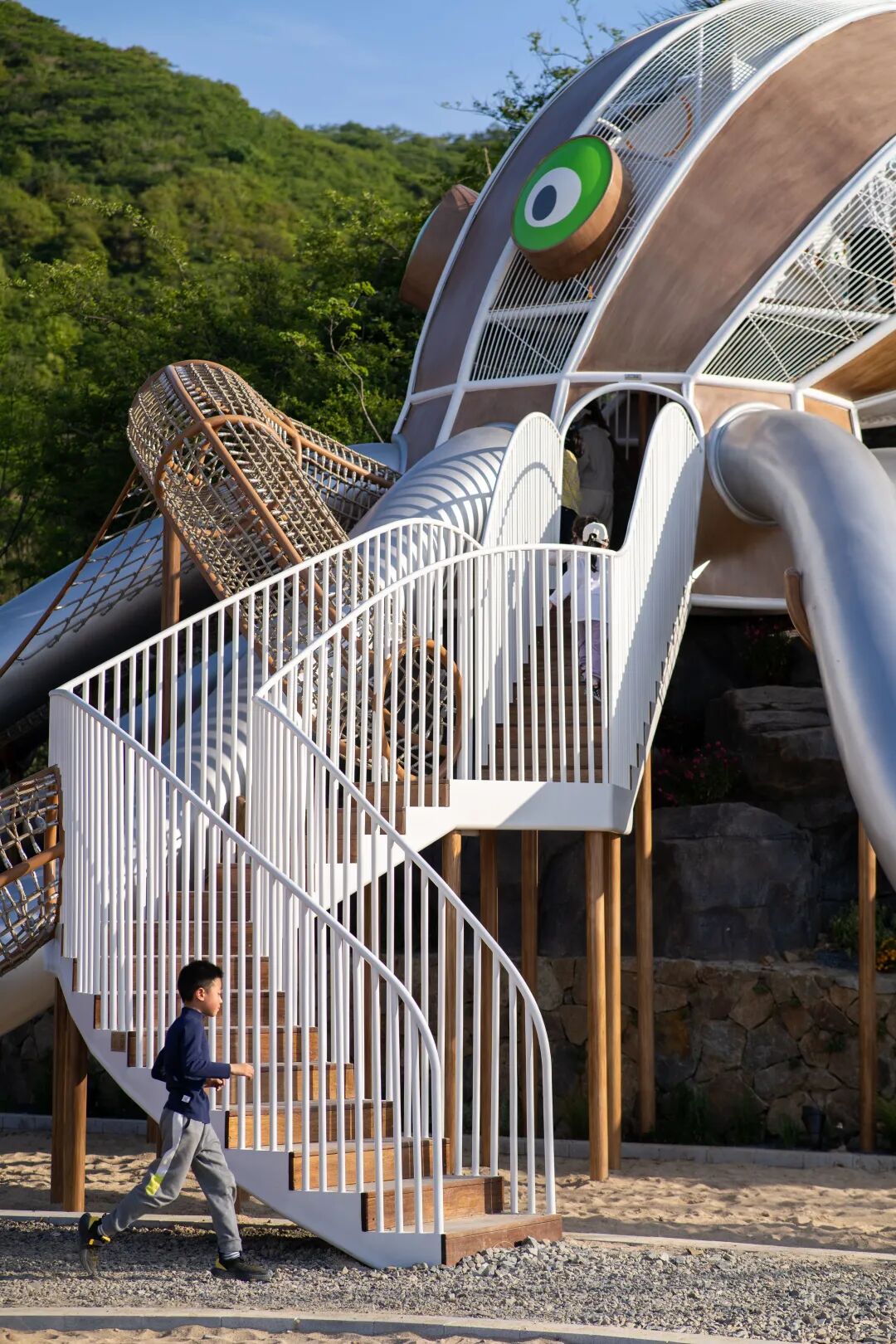 正如野口勇所倡导的“以富有想象力的设计,激发孩子们自主奔跑、跳跃、滑行、攀爬,发掘他们身体的潜能”,这是一个地形与器械高度一体化的游乐场。