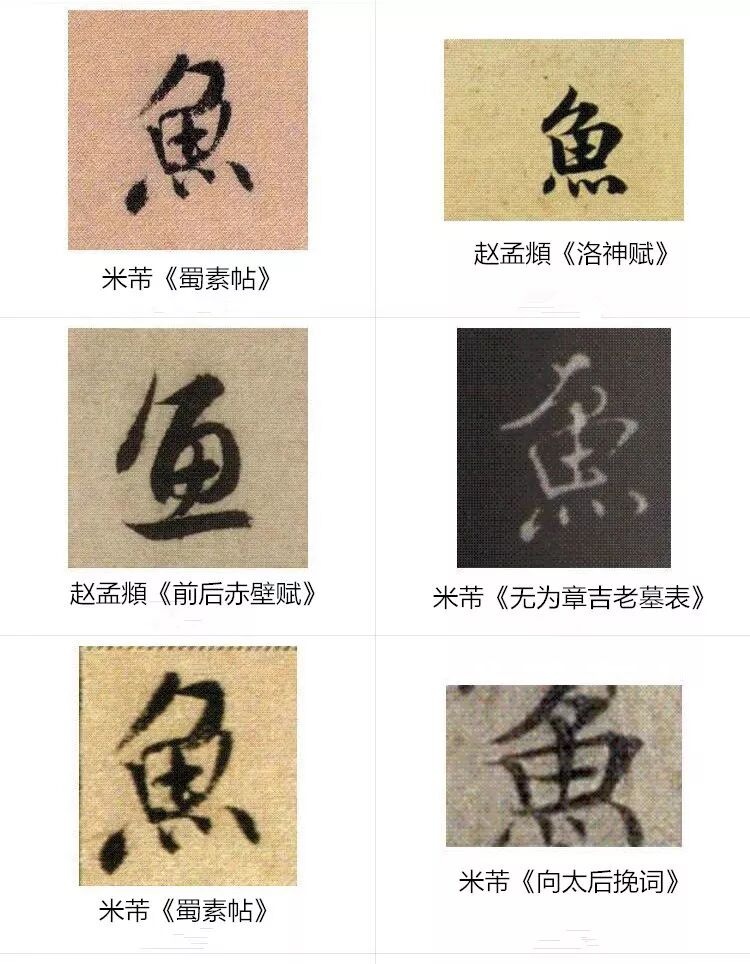 其实,“鱼”在繁体楷书中,的确应该是四点底。但是,应用在行草书中,四点则可以变通为三点,甚至是一横,所以,不要再认为简化字是1956年之后的事了,漫漫的历史长河中,文字早就消无声息地一点一点进行着变化,哪是一个“英雄人物”就能创造出来的?