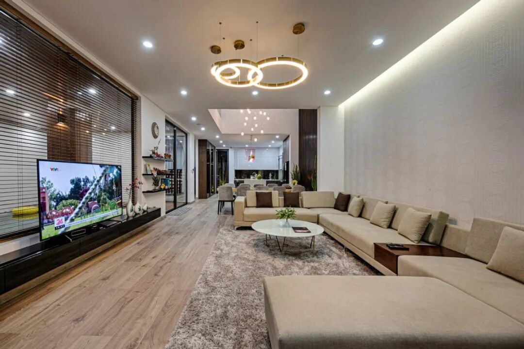 一楼客厅属于大横厅设计,空间非常开阔,主要是为了一家人聚会以及方便来客人招待,各种细节都恰到好处,很有大宅风范!