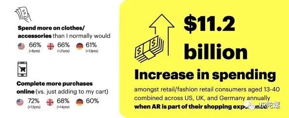 数据还显示,在时尚垂直领域也有类似的结果,AR将推动112亿美元的支出增长。