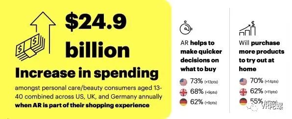 "在美国、英国、德国的7500名受访者中,涵盖了汽车、美容、娱乐、时尚零售和旅游等垂直领域的购物者旅程,我们发现,当消费者想象自己通过AR进行购物时,他们对品牌的态度和行为如何转变。"