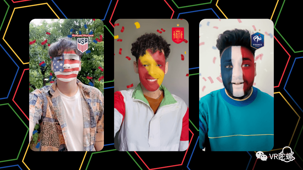 Snap的AR产品包括官方和 “有机”镜头以及代表世界各地13个国家队的AR滤镜,以及以世界杯为主题的Snapcaht Cameos功能。