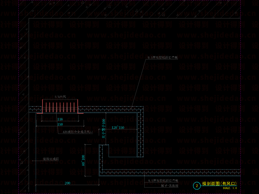 ↑ 标出开孔尺寸,调入风口图块