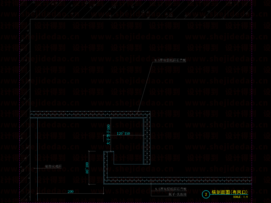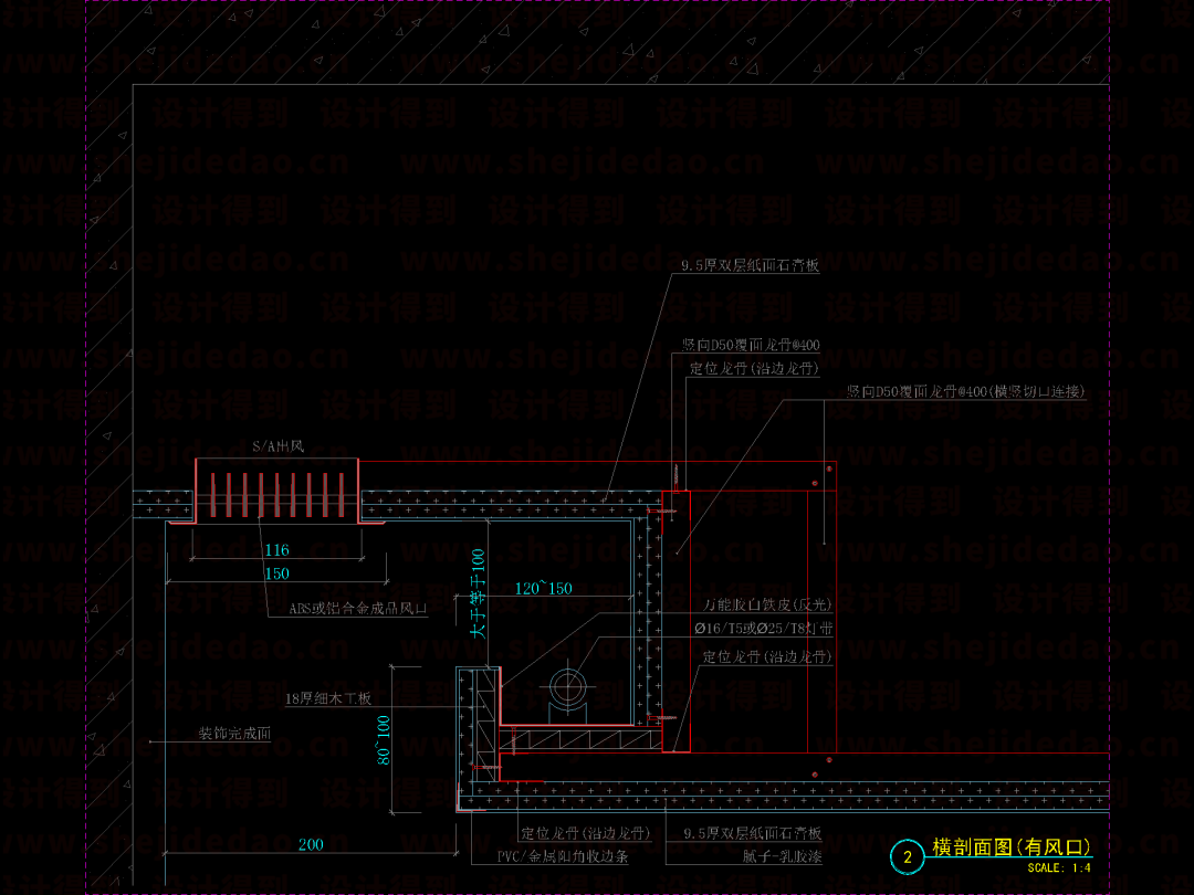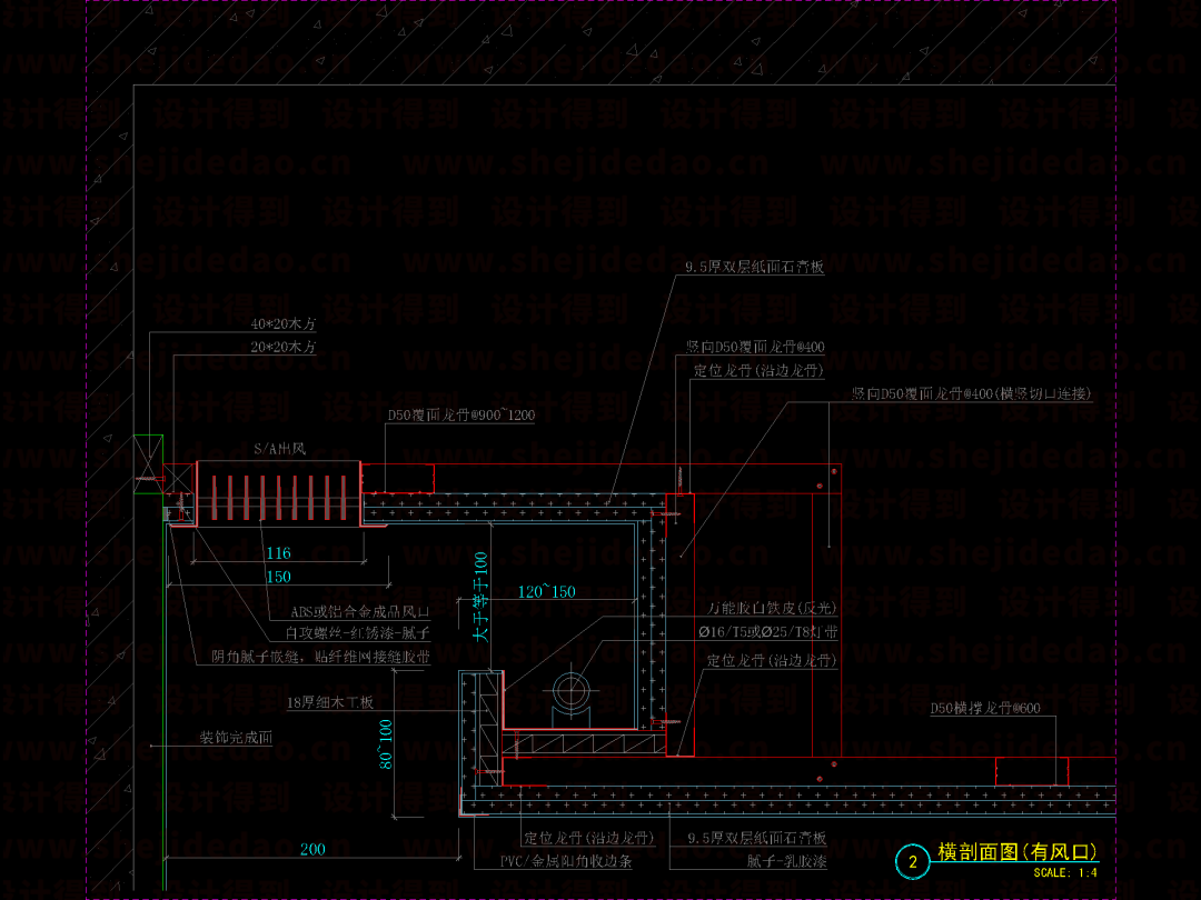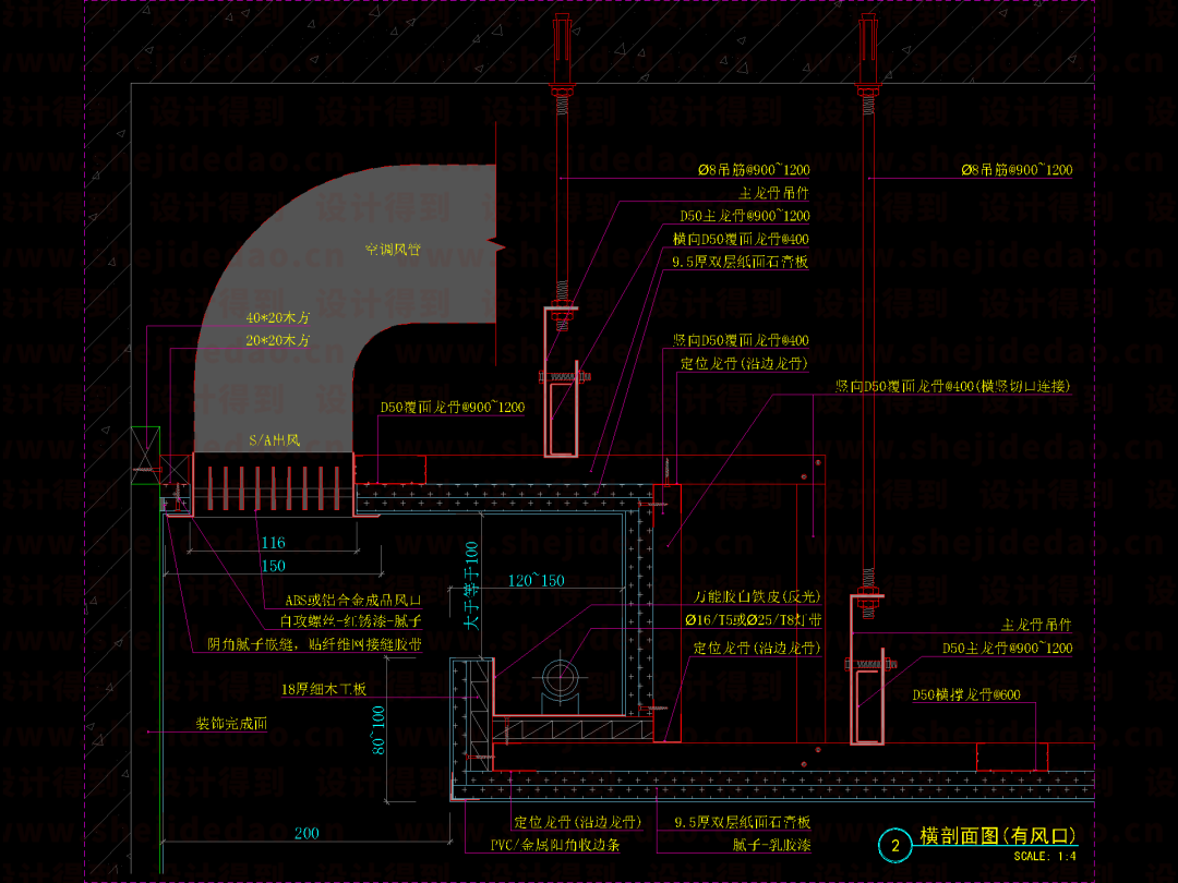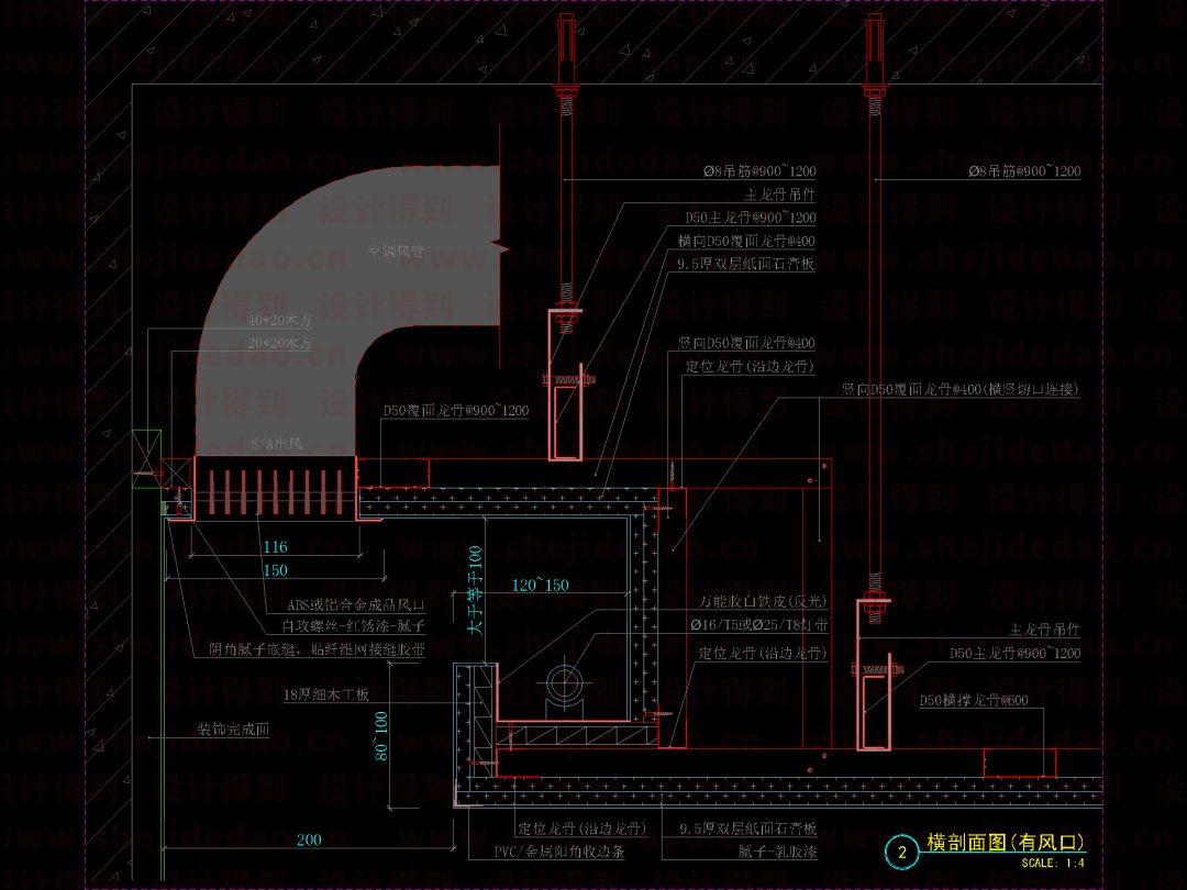 ↑ 最后,标上尺寸和材质,全龙骨吊顶节点图就完成了