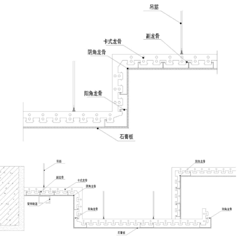 理解了这个原则后,就不用再去纠结到底哪种表达方式是规范的,标准的,唯一正确的。全龙骨做法是未来的趋势,但目前在市场中的普及度远远不足,只在一些相对正规和高标准的场合中使用。因此,后续的应用需根据不同的项目类型和图审要求,灵活使用。