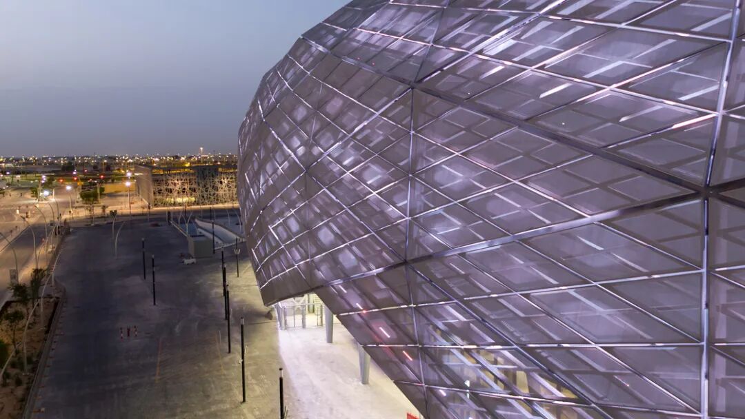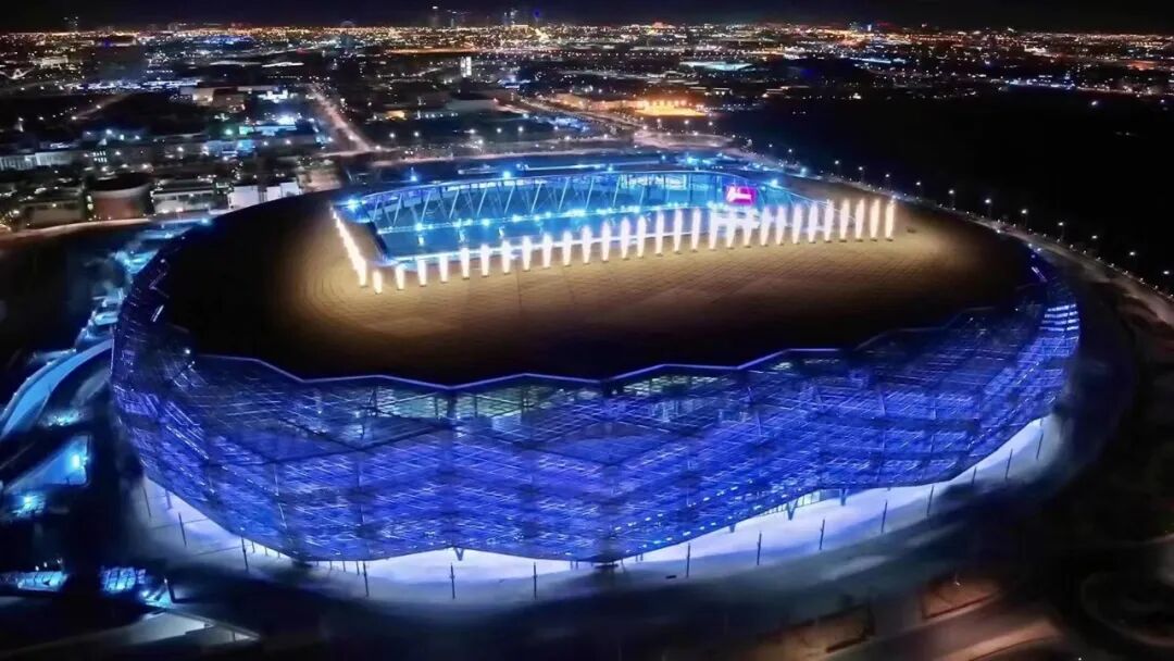 卡塔尔教育城可容纳45000位观众,是一座多功能体育场,可举办多种类型的赛事和活动。球场外立面设计以钻石切面为灵感,有“沙漠钻石”的美誉,其表面会随着阳光照射角度不同而变化。
