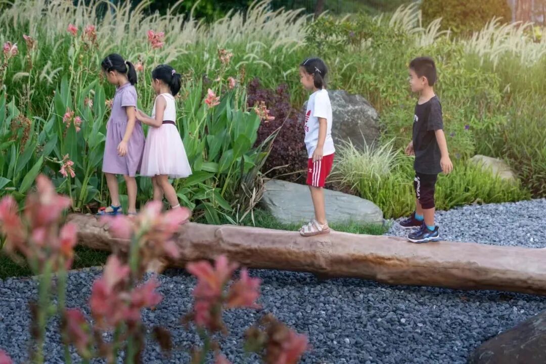在孩子们的眼中,自然里有无限的趣味等他们挖掘,流动的溪流,质感粗糙的砾石,植物发芽,长出新叶、开花、结果、还有虫子、蝴蝶、小鸟……在变化的自然中,儿童可以在其中游玩,可以获得更多自然的常识。