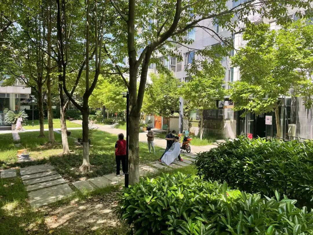 “居家这么久,现在拼的就是小区的绿化和空间了”,这是最近调研隔离社区景观最常听到的一句感慨。确实,在这样长期的隔离和压力之下,没有什么比能在一片林下空间之下,熟悉的散步更让人感到治愈。在一片林荫之下,哪怕是下楼做个核酸,取个快递,都让人心情愉悦。在这特殊时期,我们还捕捉到特别的场景——社区里的TONY老师在给居民理发,林下空间秒变“TONY老师的林下SALON”。