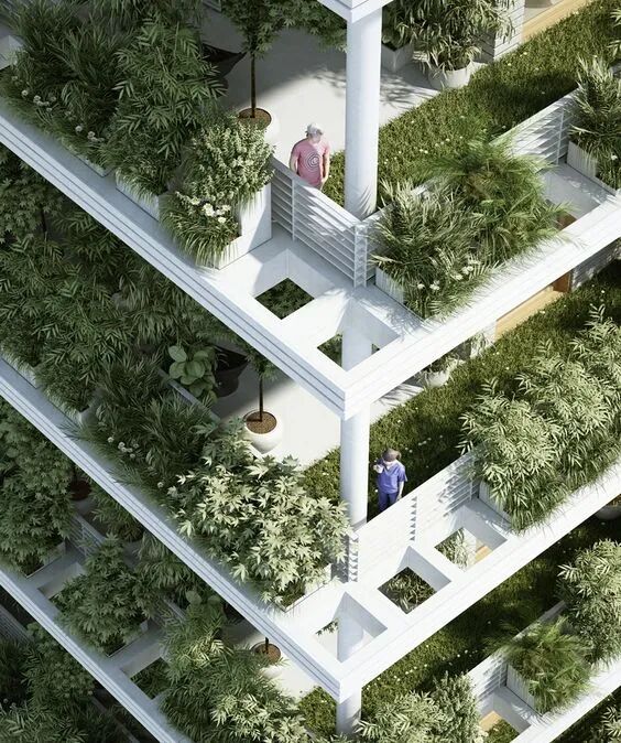 如果能在建筑内部更加有机地结合公共活动花园,服务到不同楼层的住户,哪怕足不出楼栋,也能有一定品质的花园体验。那么即使在封控期间,社区居民的幸福感也会大大提升!