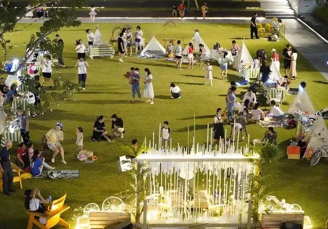 在草坪上举办各种活动并不是一个新的话题,在过去一直没有普及,其原因除了那时候人们还可以外出,在社区草坪举办活动还不算刚性需求以外,引导居民在草坪里活动,非常考验社区的物业管理、社区组织能力、相关配套、居民素质等等。