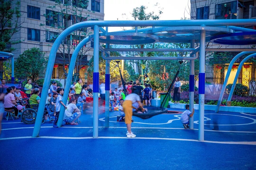 空间设计的完成是由使用者和人共同完成的——魅力之城儿童活动场地的云朵构架,白天小孩们在其中穿梭,追逐光影,开心的玩耍嬉戏,晚上变身成为社区露天电影院。场地的景观装饰风格无法定义人们的活动,而舒适合理的空间逻辑,却能让人们留下来,带来更多活动的可能性,更新场所生活剧情。或许,经历这次疫情,一些小区能重塑“邻里圈”,串起新的地缘观,从长远来看,这样的社区公共空间将激发一个地区乃至一座城市的活力。