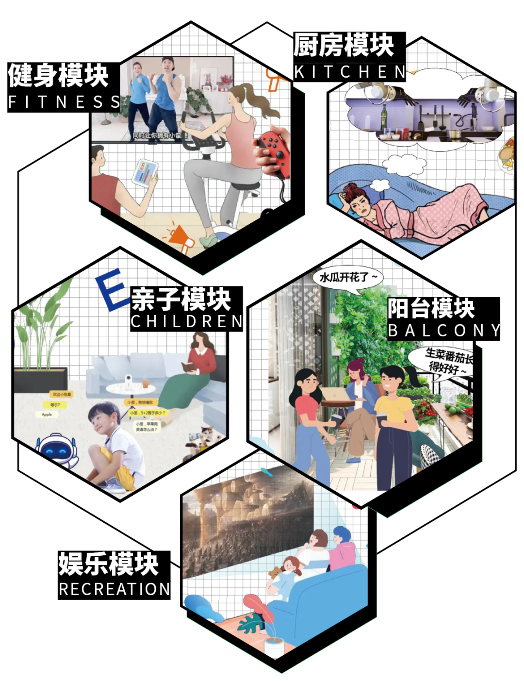 当大多数人的活动半径缩小至社区,社区只能越发向“内”生长,除了架空层,在楼栋之间布置空中公共花园,合理利用屋顶花园,甚至在各个楼层镶嵌邻里休闲花园,让儿童活动空间、观赏植物园、健身运动空间等有机融合到整个楼栋中——不出楼栋也能到达一系列景观功能空间,即使进入隔离生活,在楼栋内活动也能更加多元健康,让生活免于无聊乏味。