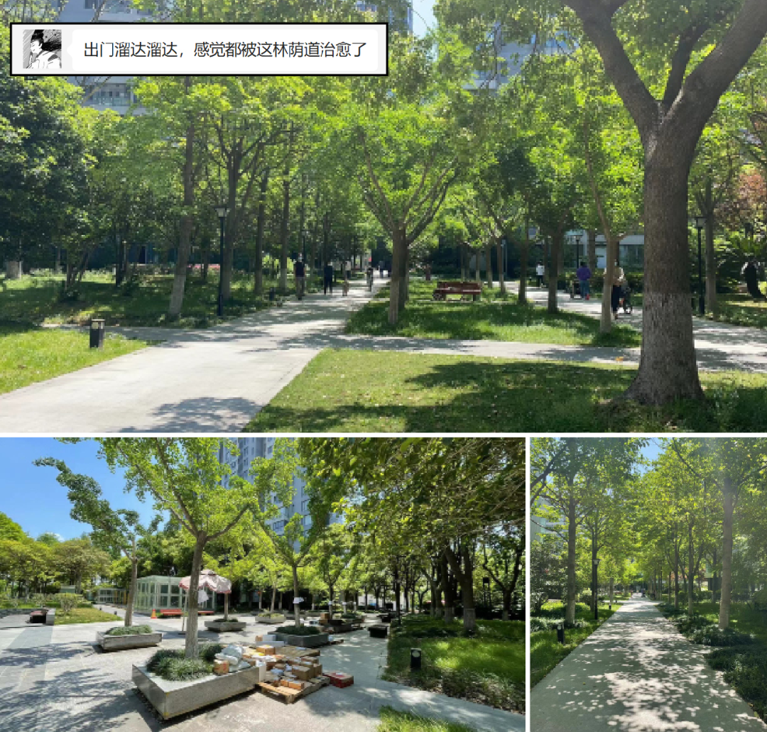 居家隔离期间,大部分居民唯一的活动就是下楼验核酸。长期处于这样行动受限的条件之下,人们容易形成心理上压抑。而在这样的情况下,唯一可以给人们带来心灵上安慰的,也许就是社区里的植物吧。居住在绿植空间充足,自然体验较为丰富的小区居民,哪怕每天下楼的时间很短,社区里的植物也有助于调节人们低落的情绪,以相对积极正面的状态来面对眼前的困境。