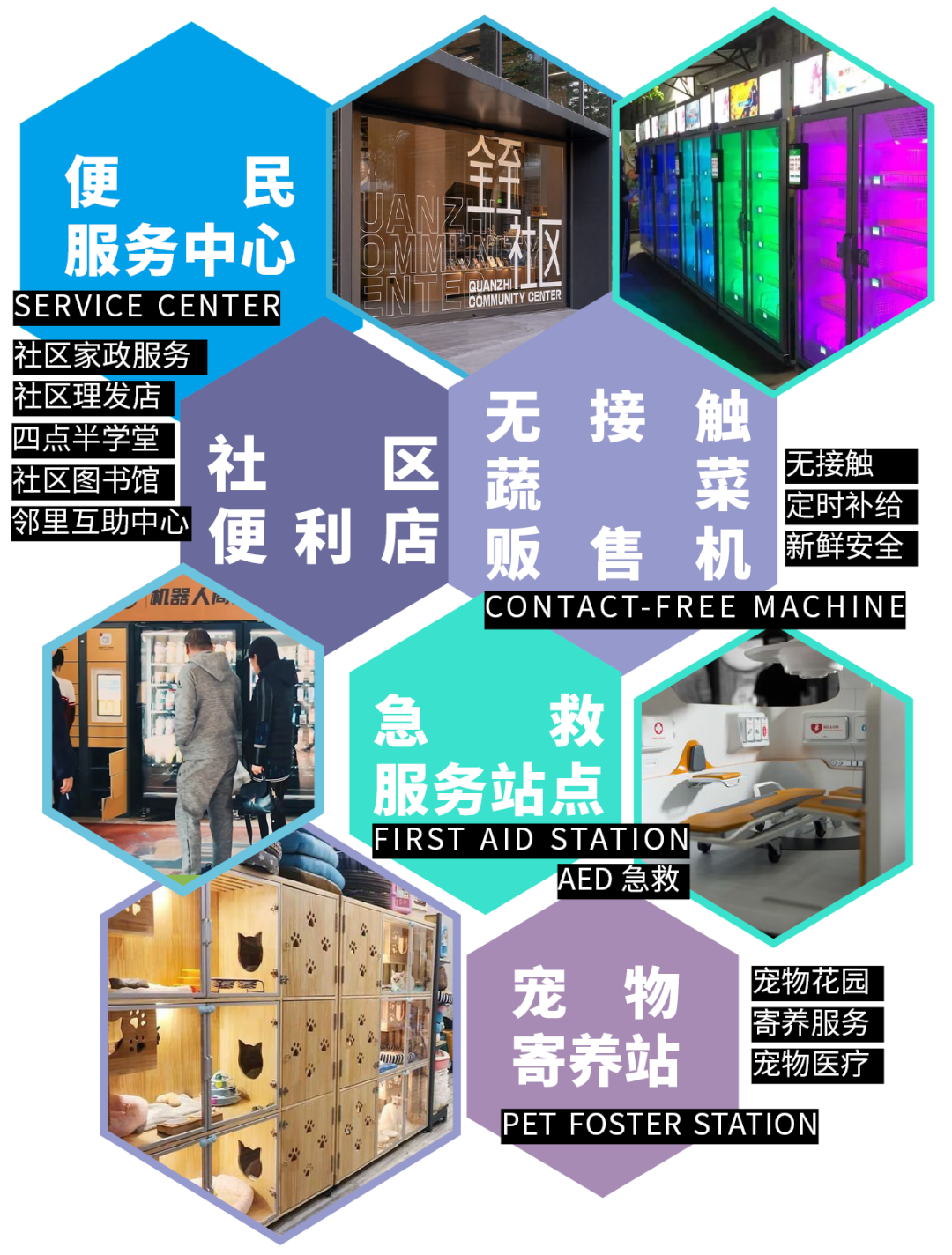 小区内一个平平无奇的小卖部,在封控期间可能成为小区居民物资补给重要的基地,针对未来不确定的全民防疫大趋势,小卖部、便利店,更可能演化成无接触食品贩售机,能为小区提供一定的物资储备。对于大型社区而言,小区内部需设置便民服务中心,提供如理发,家政等服务,急救服务站点,宠物寄养站,在极端的情况下显得尤为重要——所有的宠物主人在疫情期间最大的恶魔,莫过于万一自己被送去方舱,宠物无人照顾,甚至遭遇不测。小区的宠物寄养站无疑能为宠物主人们提供最强的安全感。