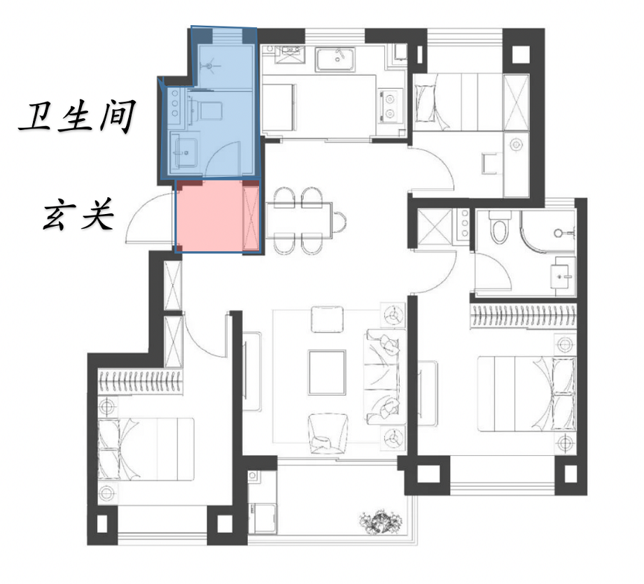 创新户型:家里的公共洗手间,搬到了进门玄关位置