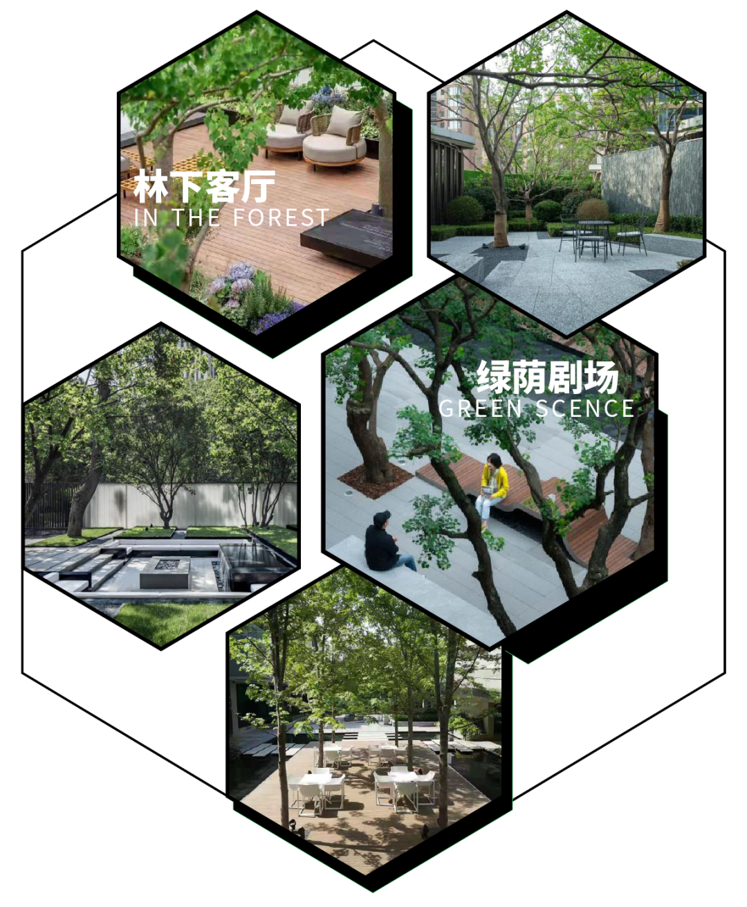 “林荫”、“树阵”,虽然是最质朴的一种造景手法,但无论是小尺度的林下休憩空间,阵列的公共广场空间,还是轴线上的林荫大道,融入自然的林下空间……“林下”空间都自然的镶嵌在不同类型,形成看与被看的关系,实现空间渗透,打造舒适又有颜值的空间体验。