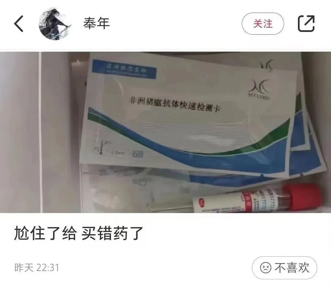 是测新冠病毒,不是非洲猪瘟!