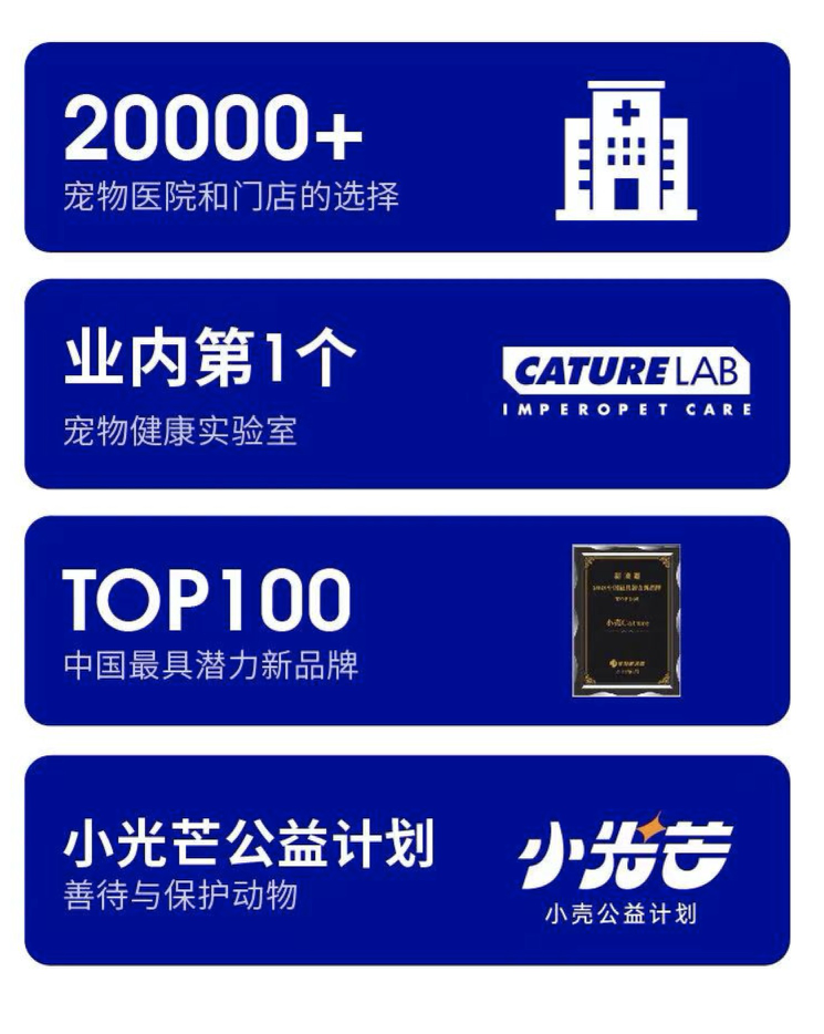 为了打造出精益求精的产品,在这五年期间里,小壳Cature 光是研发便花了 2000 万,建立了业内第一个宠物护理实验室、超 4000㎡全自动化自有工厂,每个产品会经过 10000 + 用户临床测试后才被准许上市,每款产品也会经历 4 代产品升级,目前拥有 40 + 自主发明专利。