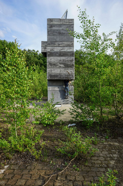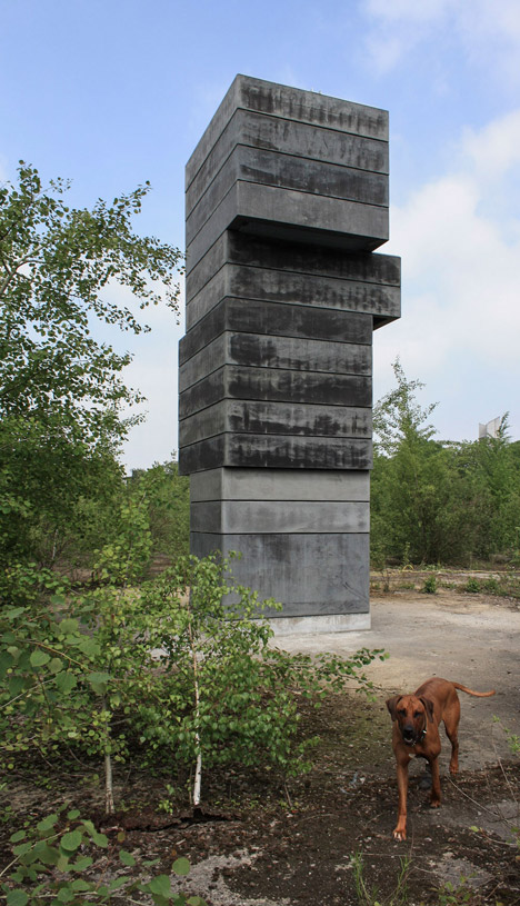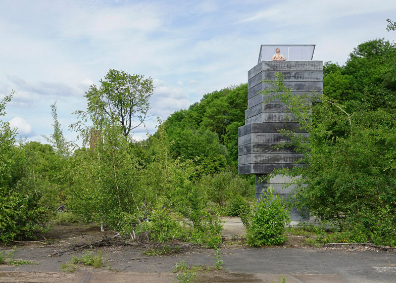 德国建筑 Modulorbeat 在波鸿市郊一个废弃工厂遗址上将矿井常用的混凝土构件堆叠在一起建造了一座垂直竖井塔楼,里面设有一间小型桑拿房。