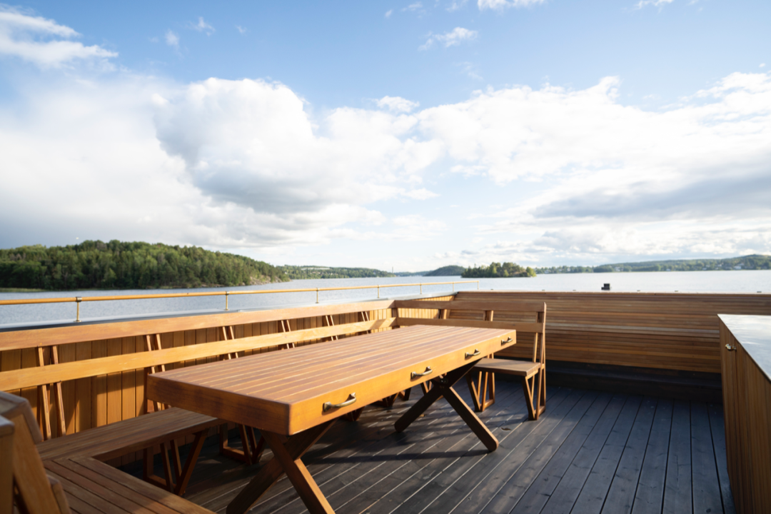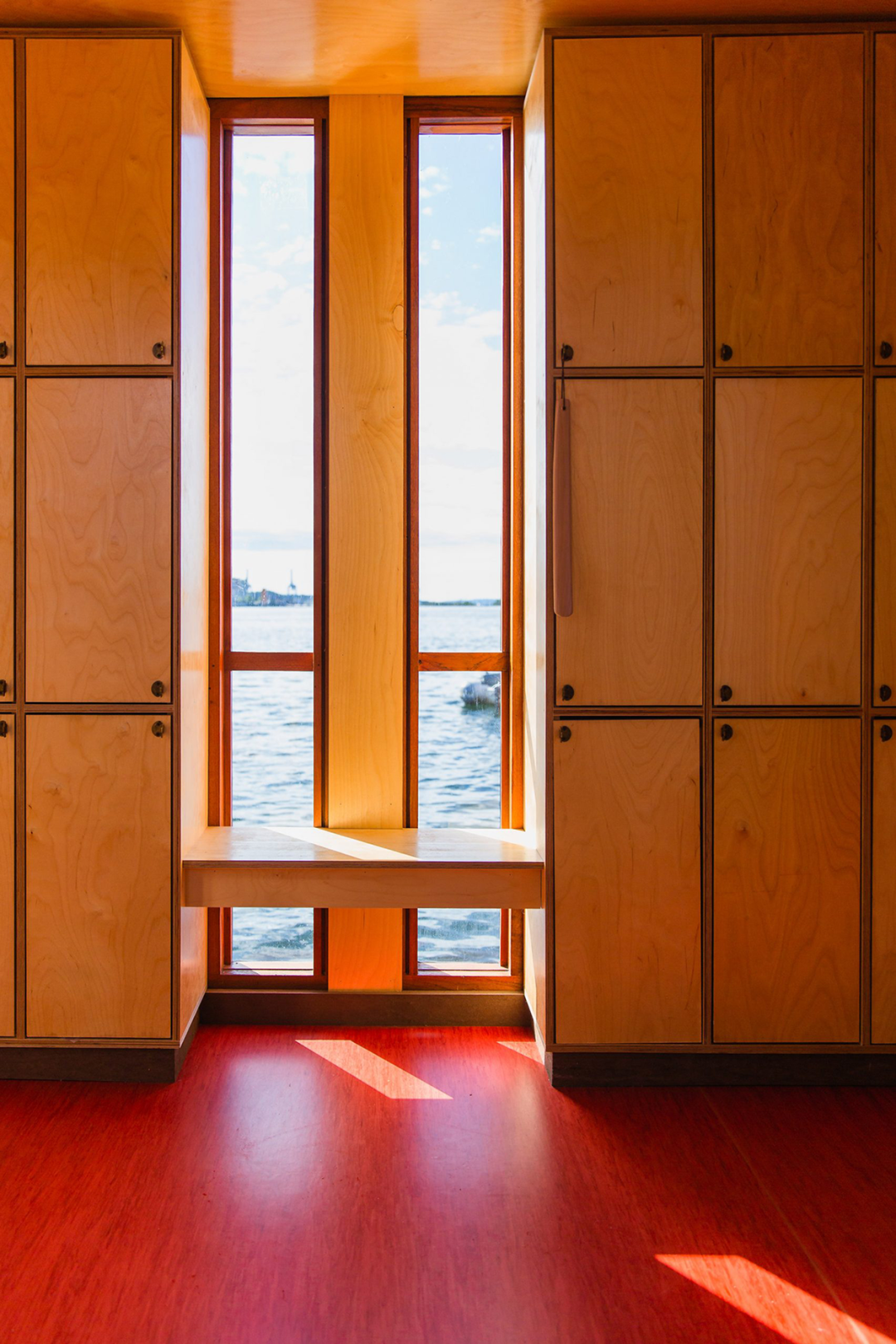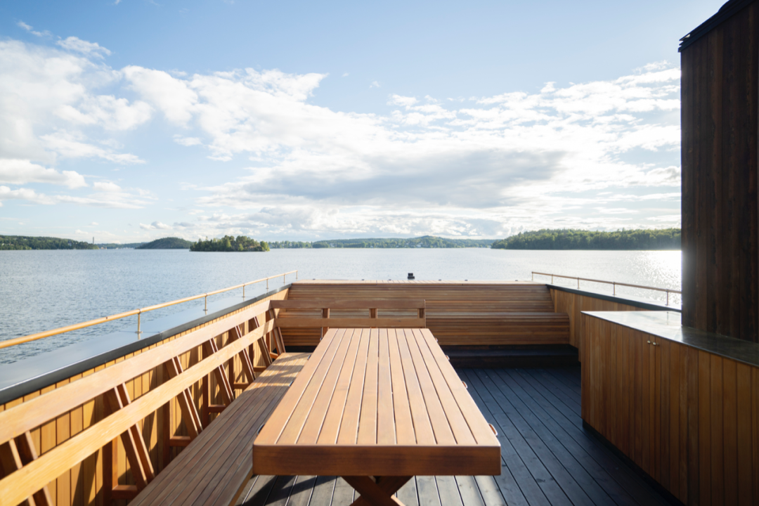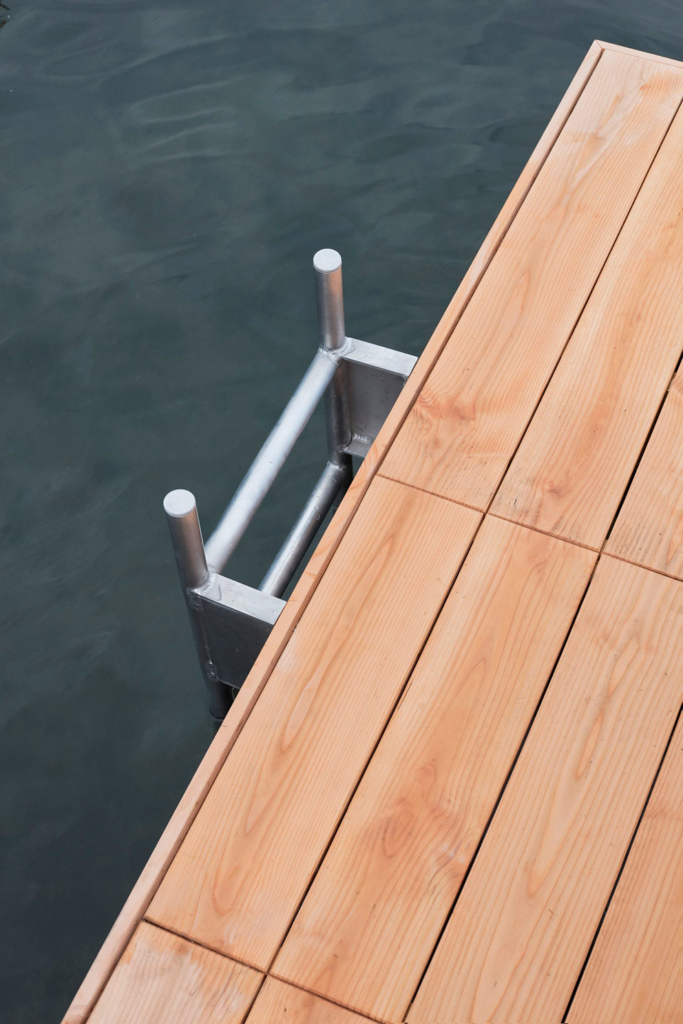 除了作为休息和放松的场所外,环绕桑拿浴室的室外平台还可作为小船和独木舟的码头。