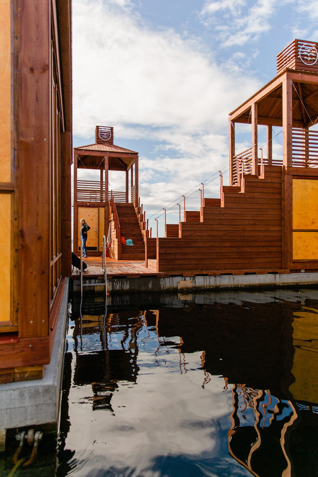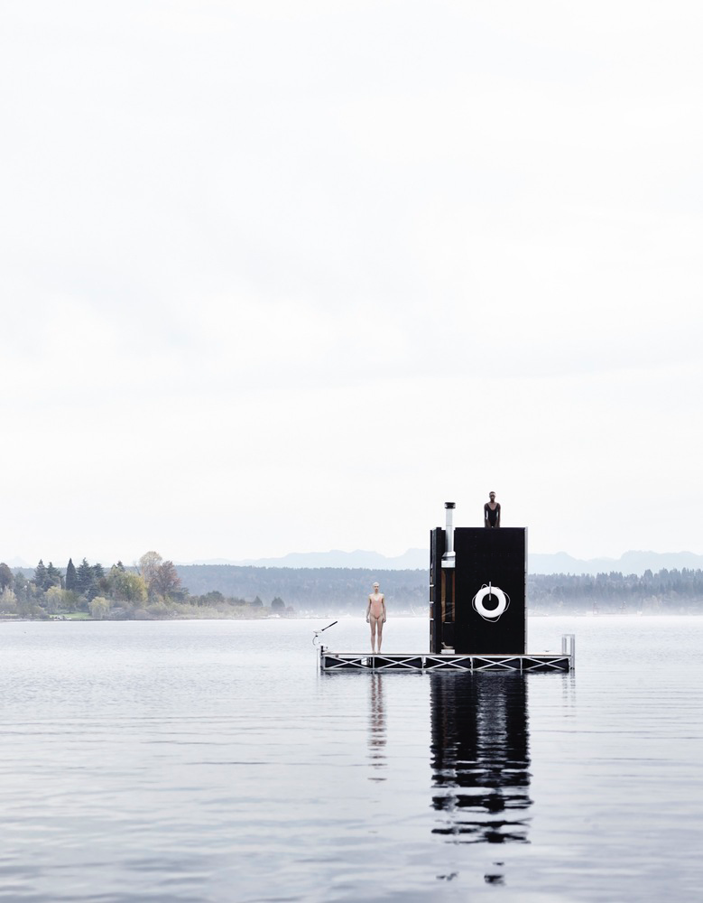 14 英尺高、4500 磅重的漂浮桑拿房 wa_sauna被策划作为水面上一处独特的体验场所,以全年吸引游客到湖上游玩为目标,桑拿传统在西雅图的这片湖泊上得到延续。