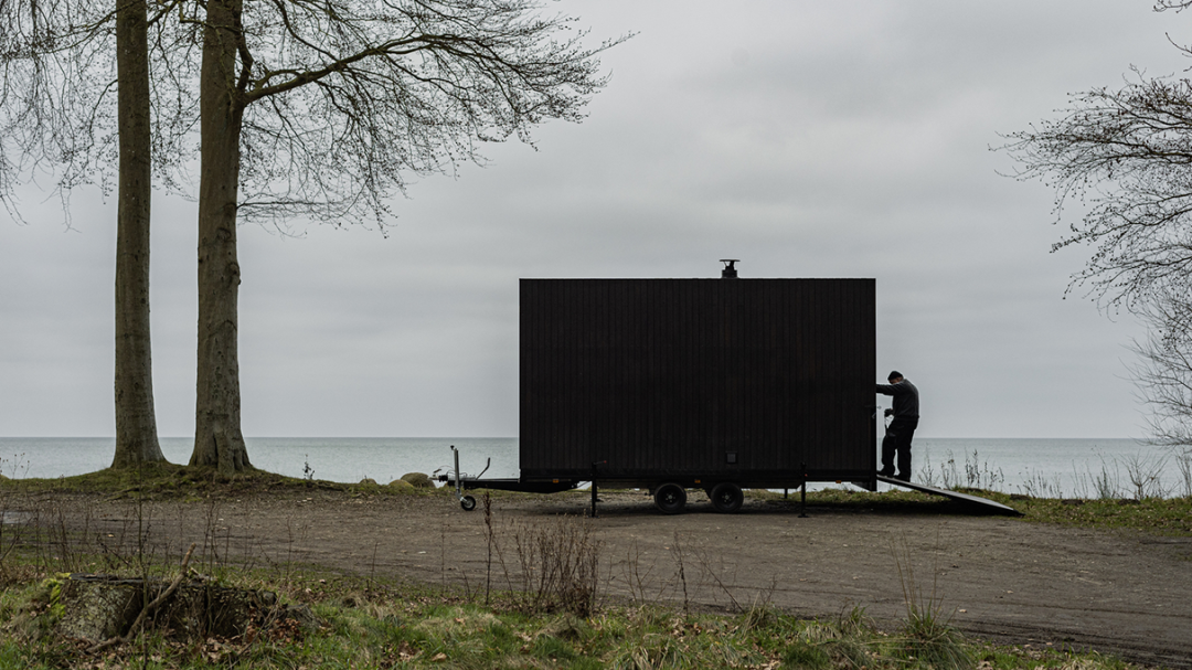 由建筑公司 Native Narrative 代表丹麦最南端的一群冬季桑拿爱好者设计的移动桑拿浴室,包含8-10 人的的舒适座椅和全景窗,为他们提供放松的桑拿体验。