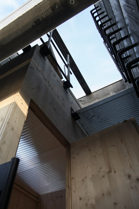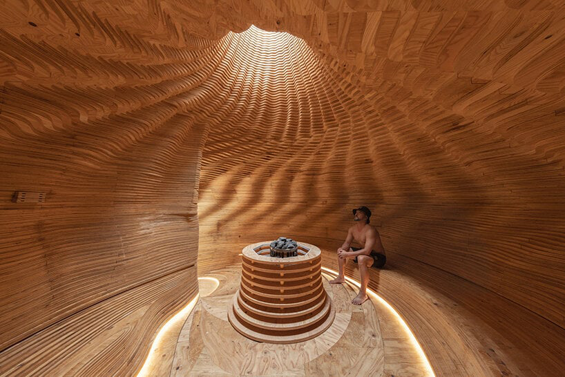 桑拿浴室的顶部开口照亮了洞穴般的内部空间,并通过顶部进气和底部排气的方式实现良好通风。