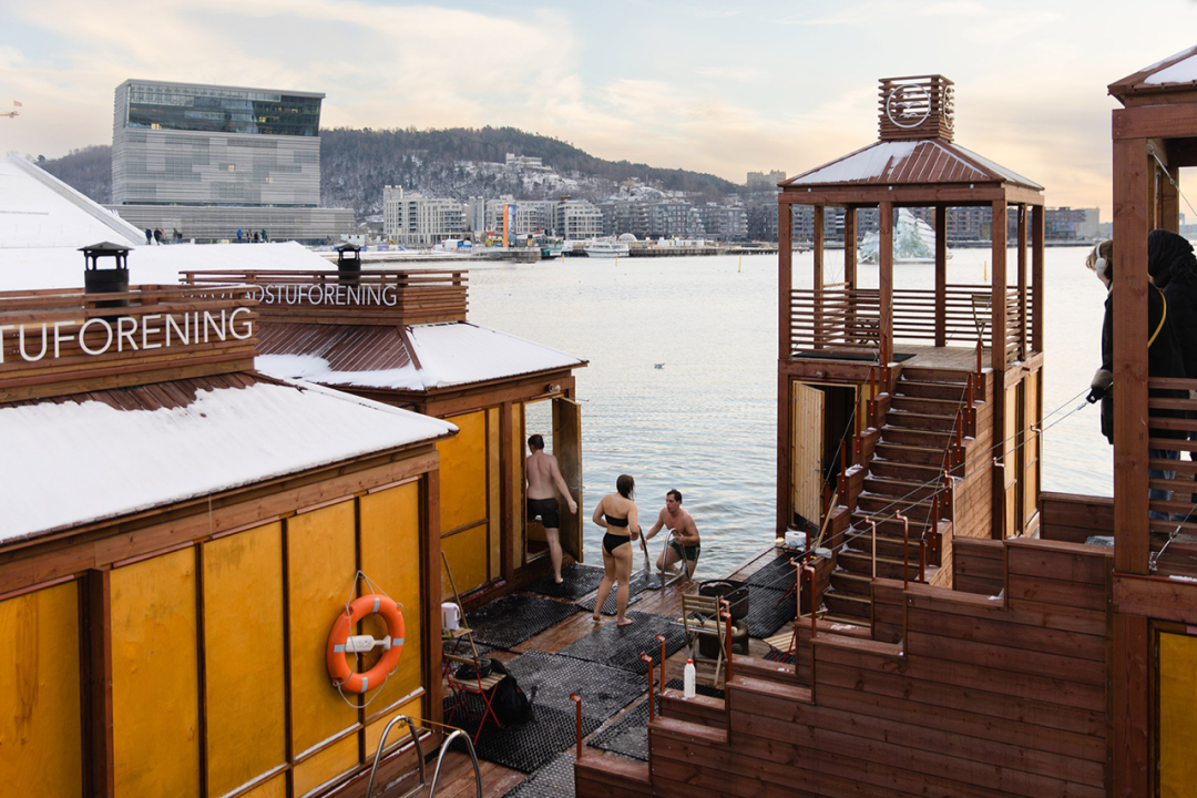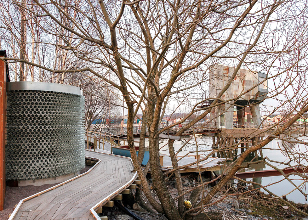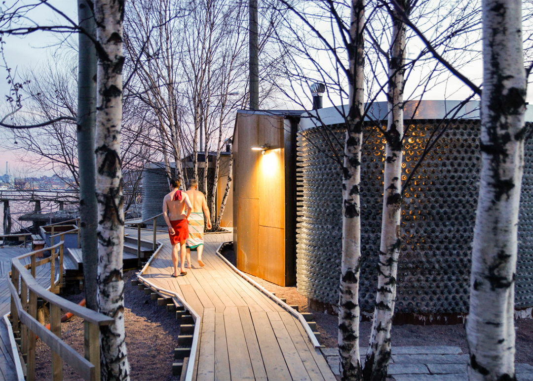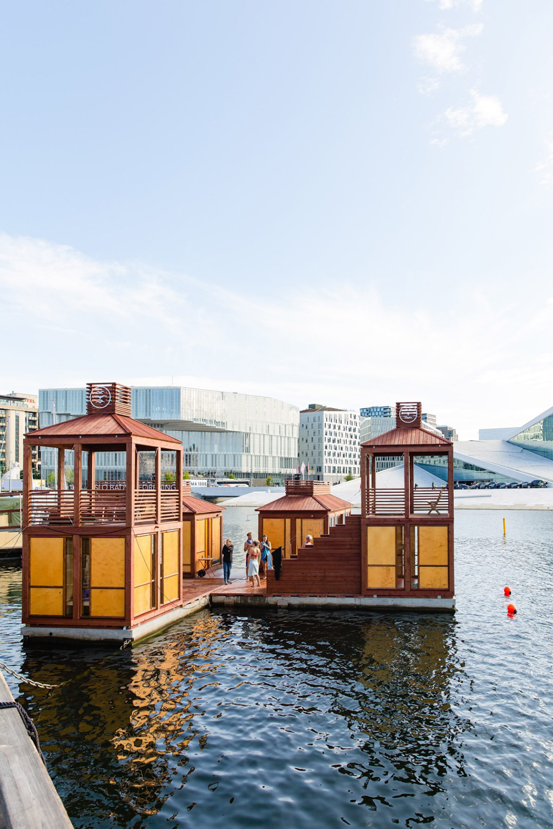 柏林工作室 Raumlabor与当地居民在典哥德堡的工业港口合作建造了一座公共桑拿浴室,通过木桥与另一端的淋浴房相连接,是城市社交聚会与运动的新热门场所。