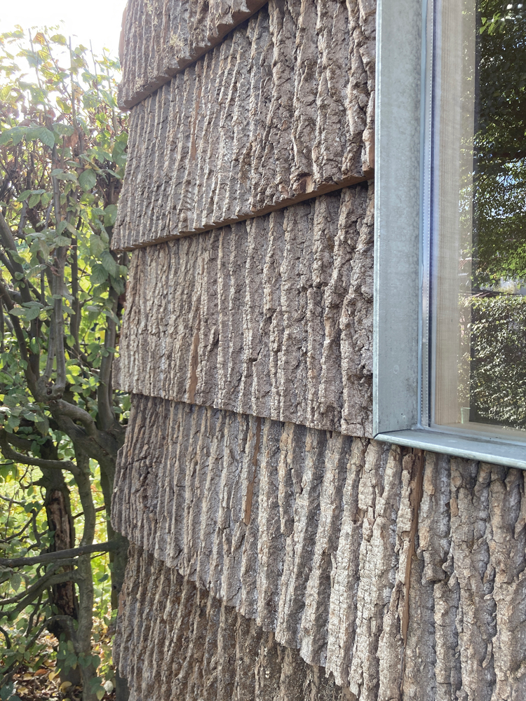 建筑师使用传统的日本烧杉技术处理外部木材,使其在不使用有害化学物质的条件下亦可抵抗各种天气和虫害。