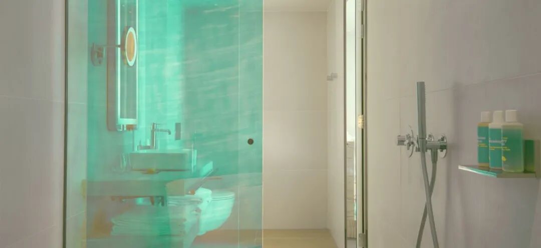 酒店其他公区,也使用嵌入式LED灯带、螺旋式顶灯以及鲜明的色彩对比来营造个性鲜明的空间。