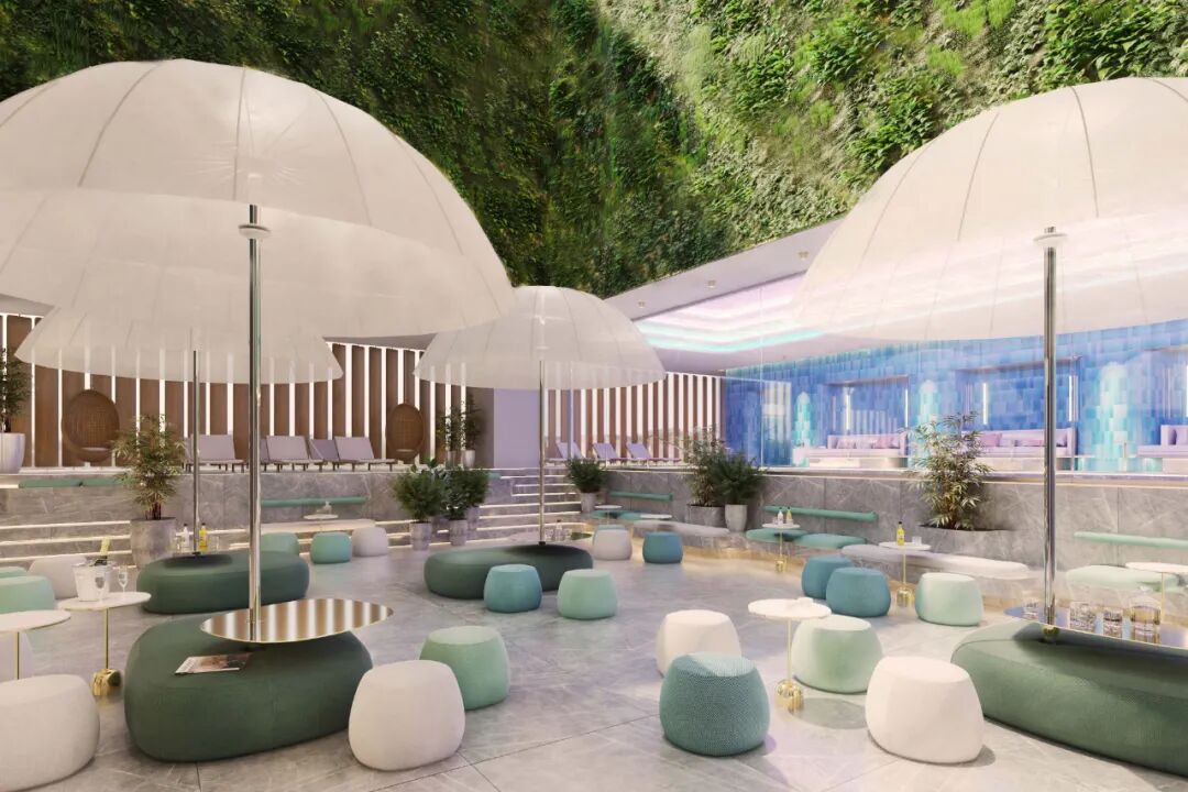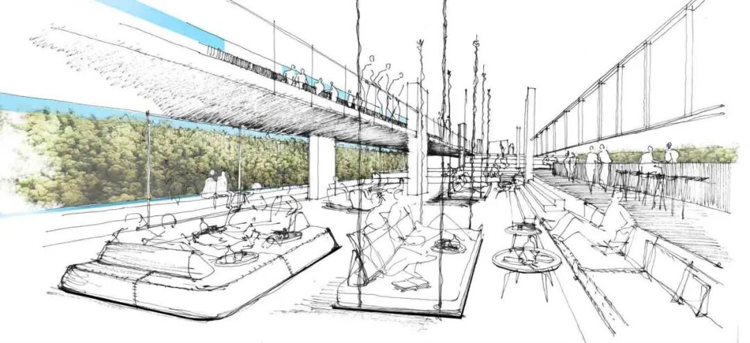 宽敞的室内休息室以抬高的平台为特色,使客人能够在欣赏从滨海广场到室外游泳池和大海的美景的同时,有着放松交流的环境。 ▽
