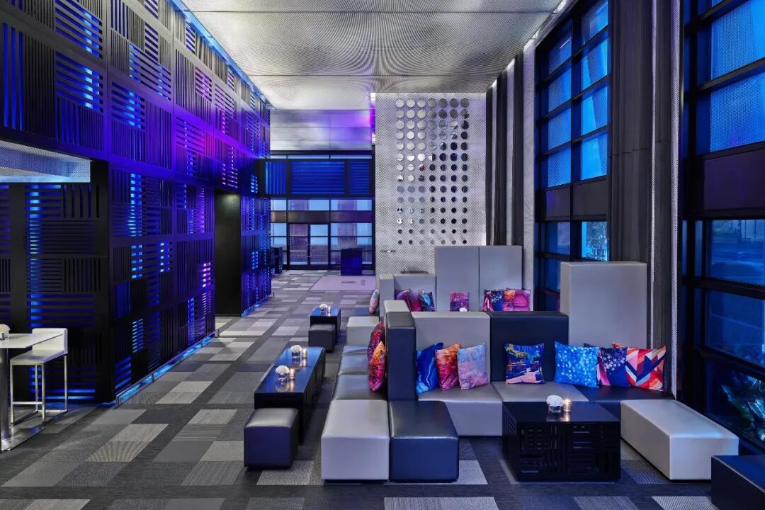 融合朴素清雅的日式元素以及现代几何线条、时尚绚丽的装潢品,并结合城市当地特色亦是W的标志。