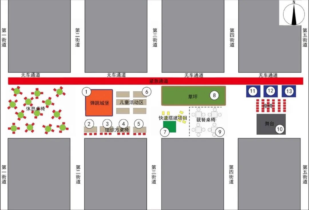 如规划以15 min社区生活圈为基础的步行系统布局指引;构建符合行人尺度、舒适、安全、有趣的街道空间,丰富行人的视觉体验,对街旁建筑和绿化植物进行细节设计以提高街道美观性;增设互动性小品,丰富街道的趣味性,创造高质量的城市环境,丰富行人的步行体验,使步行成为一项有价值和令人愉快的活动,以此吸引居民积极参与步行街道活动。