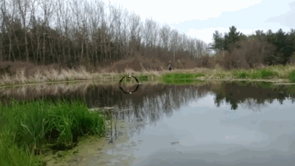 照片中,一直白头海雕双翼完全伸展掠过水面,双眼直视镜头威风凛凛。背部与双翼构成的弧线在平静的水面中形成了完美的倒影,令人震撼。