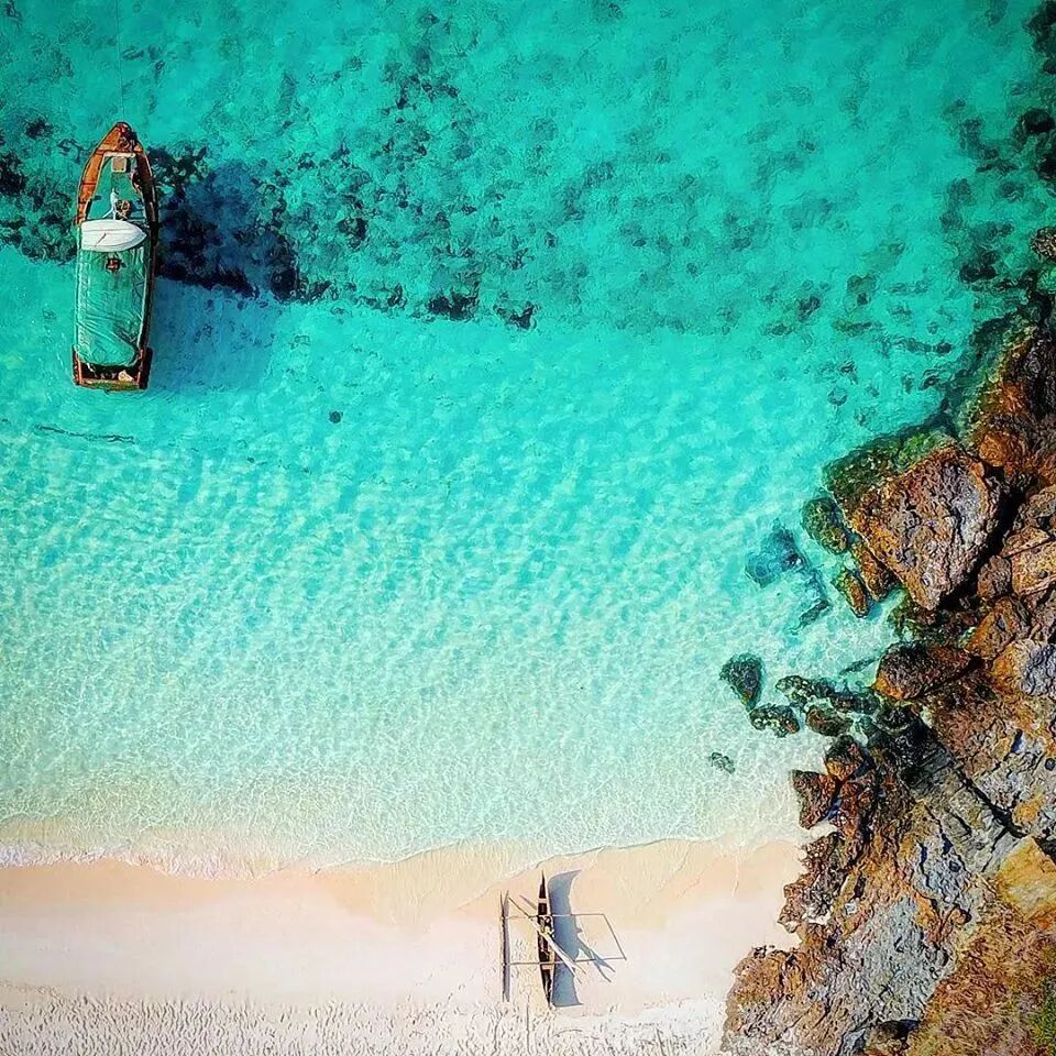 这里拥有洁白而细腻的沙滩,必须赤足才能真实的感受到它的柔软,因此“赤足”也是这里原始的特色之一。碧绿、深蓝的海水因为阳光的折射、海底水藻砂石等状况的不同而呈现不同的色彩,如此魔幻的颜色也只有上帝的调色盘才能调得出。