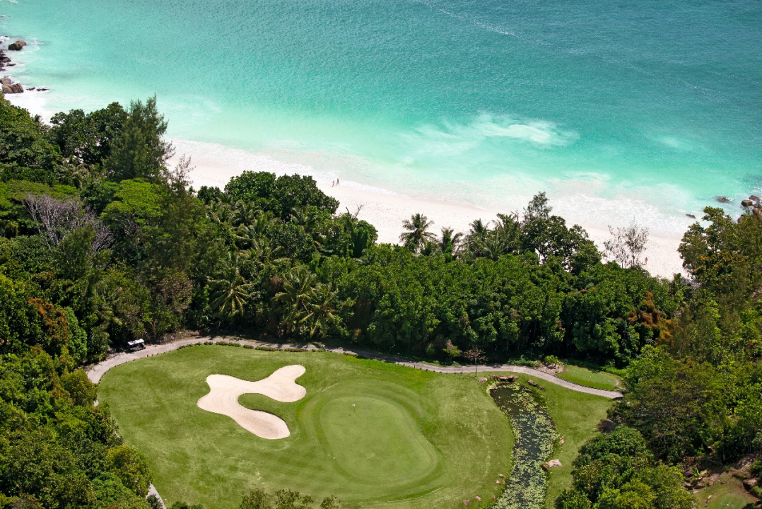 酒店内的高尔夫球场于2000年10月落成,占地80公顷,由美国高尔夫设计大师Rodney Wright设计,是塞舌尔境内唯一的18洞比赛级高尔夫球场。精湛的球道设计与延绵原生茂盛植被的自然风貌交相辉映,享受犹如“在天堂挥杆”的绝妙体验。球场内有为客人提供高尔夫用品的商店及Diva餐厅。壮丽的自然景观勾勒出普拉兰岛的海岸线,在第15洞处可以俯瞰世界最美海滩Anse Georgette的无敌海景。