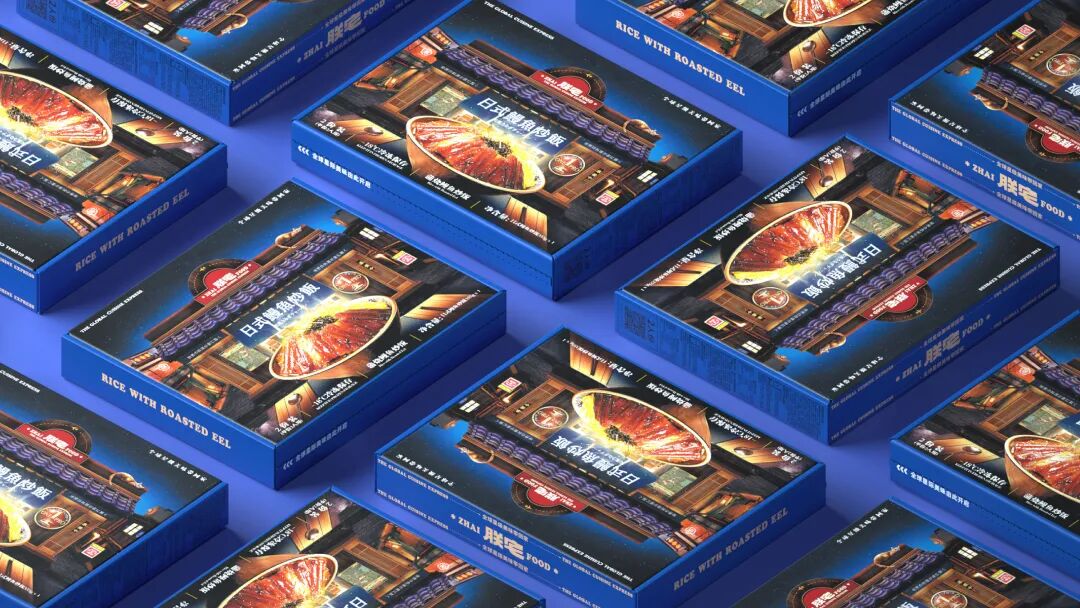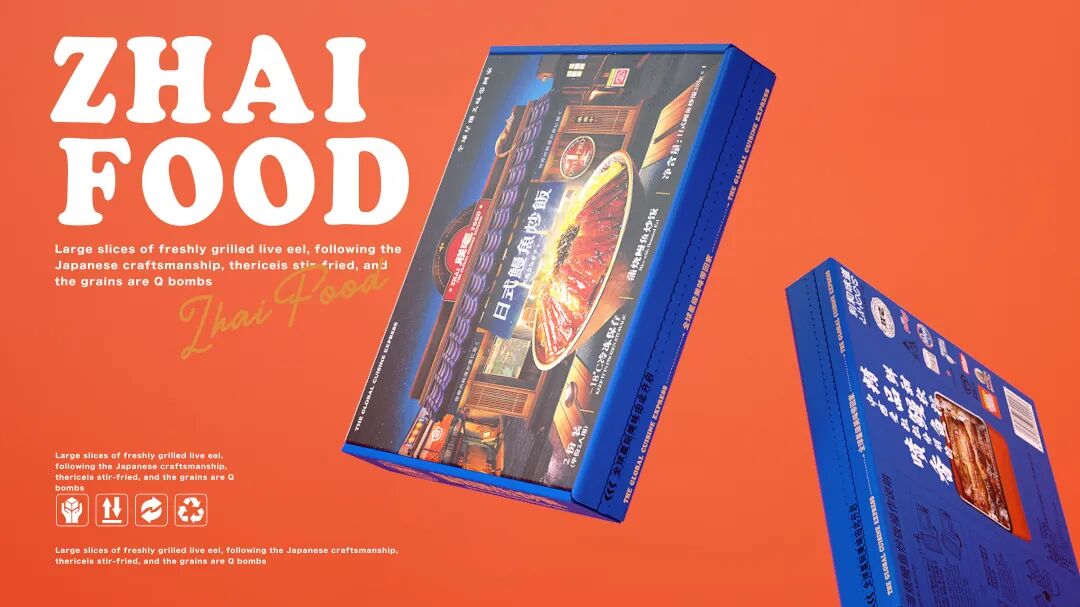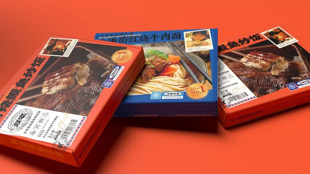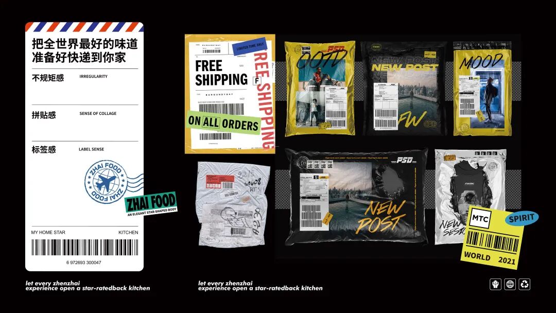 为了让消费者足不出户,就可以享受到来自世界各地的新鲜美食,所以我们提取了全球美食速递到家的概念,并且提取了快递盒作为核心表现形式在包装上去呈现。