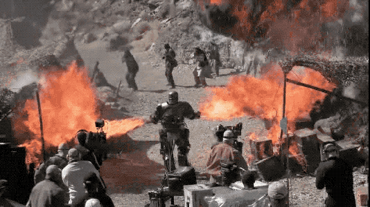 比如我们当然知道《沙丘》中宏大的沙漠场景不可能完全是实拍,但是剧组并没有因此而完全依靠Houdini生成的粒子来完成“黄沙漫天”“渐欲迷人眼”的模拟场景,而是确实用掉了18 吨灰尘/沙子与鼓风机,让沙子真实地卷入风中,落在演员发丝间,拍打在演员身上,实现半实物拍摄,半模拟场景的统一