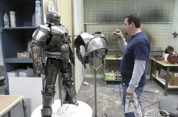 比如电影里最初登场的MARK1,斯坦温斯顿工作室先是设计制作了一个1:3的微缩模型,方案通过后又根据模型制作了真人1:1的可穿戴道具,因此电影里不少镜头都是由演员小罗伯特唐尼穿戴着真正的MARK1盔甲拍摄的,甚至里面一些用火焰喷射器喷射的镜头也是实拍完成
