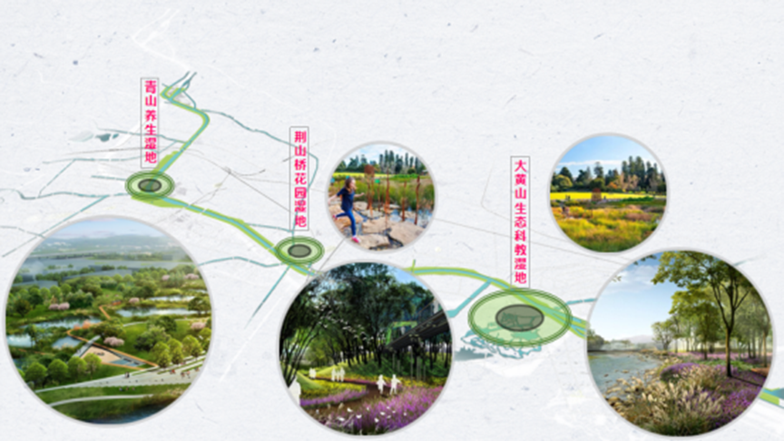这里还将通过水系的调整、水上交通的恢复,强化水乡慢生活的回归,修复沿岸绿道系统,逐步更新与提升沿岸业态,与在地文化要素结合。南面与相邻丁山湖湿地联动,适当打造高端湖畔民宿、精品农家乐等产品,模糊居住与旅游的边界,令居民感受诗意栖居,游客沉浸水乡生活。
