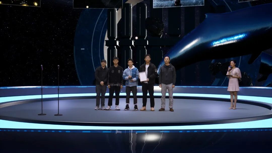 专业组佳作奖获奖选手席向昭、涂俊林、王祥龙、蒲又奇、王杰翔(代领)、李蔚(代领)与颁奖嘉宾吴瑕(左一)、周觉先(右一)